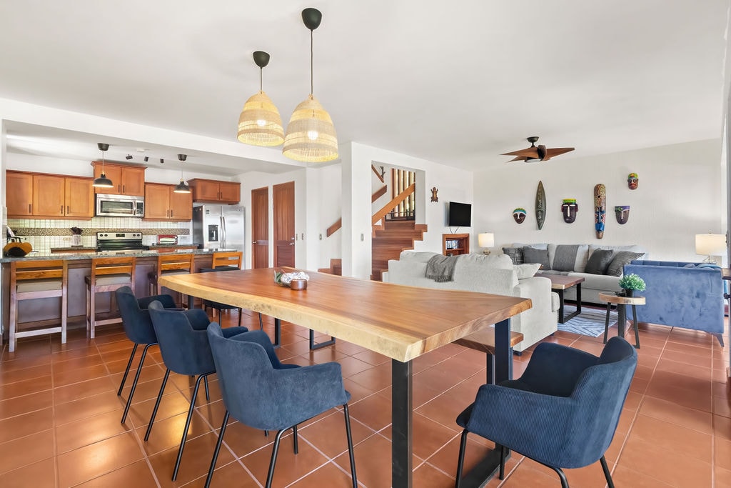 Nouvellement rénovée. Séjournez dans une superbe villa avec piscine à débordement privée, située dans une communauté sécurisée, proche des plus belles plages du Costa Rica. Entièrement rénovée en 2025, elle offre confort moderne et vue imprenable. • 2 chambres climatisées avec salles de bain privées • Espace ouvert avec cuisine équipée et salon cosy • Salle à manger extérieure pour admirer des couchers de soleil spectaculaires • Wi-Fi, alarme et parking clôturé