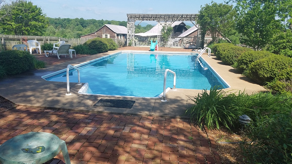 Ιδιωτική πολυτέλεια. Αυτή η γαλήνια σουίτα επισκεπτών βρίσκεται σε ένα αγρόκτημα 43 στρεμμάτων - Μέλισσες και Δέντρα - και είναι προσαρτημένη στο βόρειο άκρο της κύριας αγροικίας. Μια ιδιωτική πύλη κήπου σας οδηγεί κατευθείαν στη σουίτα σας, λίγα βήματα από την πισίνα. Απολαύστε έναν μαγικό ουρανό γεμάτο αστέρια ενώ χαλαρώνετε στο τζακούζι ή απολαμβάνετε το τζάκι! Υπάρχει εκπληκτική θέα στην ανατολή του ηλίου από τα μπροστινά παράθυρά σας, υπέροχα ηλιοβασιλέματα από την πίσω βεράντα σας και το κοντινό κιόσκι σας δίνει και τις δύο απόψεις. Σας αξίζει μια διαμονή μαζί μας!
