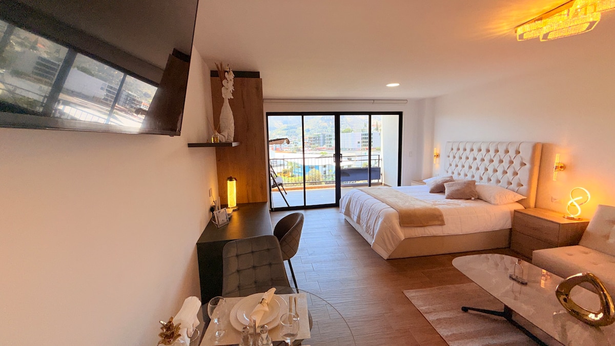 Όμορφη σουίτα στον πέμπτο όροφο με όμορφη θέα. Βρισκόμαστε στην Cumbaya, 5 λεπτά με τα πόδια από το Πανεπιστήμιο του Σαν Φρανσίσκο του Κίτο και το Paseo San Francisco. 3 λεπτά με το αυτοκίνητο από το κέντρο της Cumbaya. Λίγα βήματα από φαρμακεία και εστιατόρια. Σουίτα εξοπλισμένη με κρεβάτι και διπλό καναπέ. Διαθέτει ένα πλήρες μπάνιο και ένα μισό μπάνιο, καθώς και μια κουζίνα εξοπλισμένη με όλα όσα χρειάζεστε και έξοδο στα μπαλκόνια. Το κτίριο διαθέτει περισσότερες από 13000 τ.μ. παροχές.