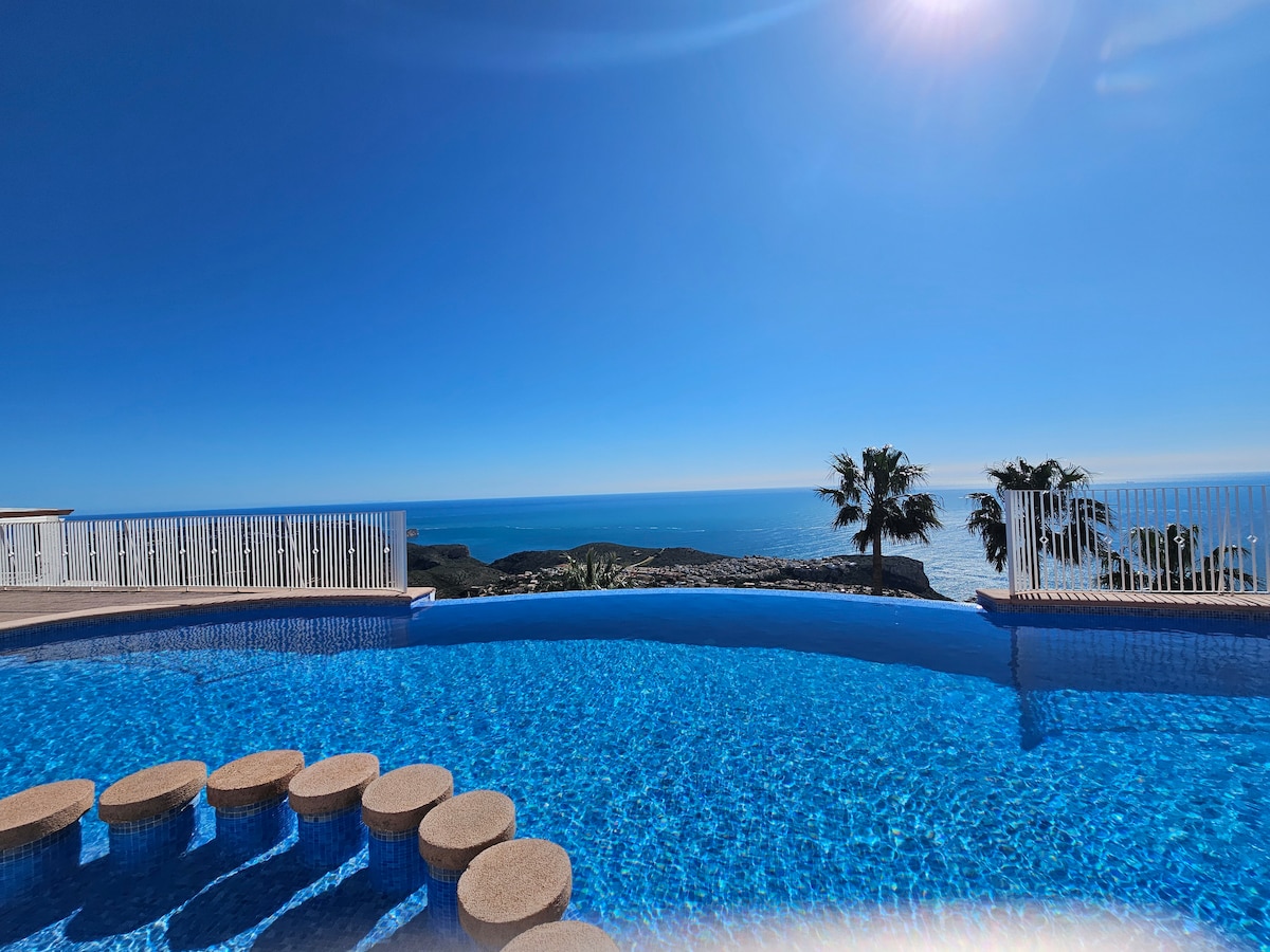 Διαμέρισμα στο Cumbre del Sol με θέα στη θάλασσα 180°. Μεταξύ της Βαλένθια και του Αλικάντε, πλήρως εξοπλισμένο για 4-6 άτομα: 2 υπνοδωμάτια, κουζίνα, σαλόνι, 1 μπάνιο και βεράντα με θέα στη θάλασσα. 2 πισίνες + παιδική πισίνα στους πρόποδες του διαμερίσματος. Κλιματισμός, πλυντήριο ρούχων, πλυντήριο πιάτων, 2 τηλεοράσεις, wifi, πιάτα, σεντόνια, πιστολάκι μαλλιών.. Παραλίες, εστιατόρια, μπαρ, βουνό για πεζοπορία, γήπεδα τένις και παντλ, θαλάσσια σπορ.. 5 λεπτά από την παραλία Cala Moraig, 10 λεπτά από την παραλία Javea και Moraira, 20 λεπτά από το Calpe και 30 λεπτά από το Benidorm