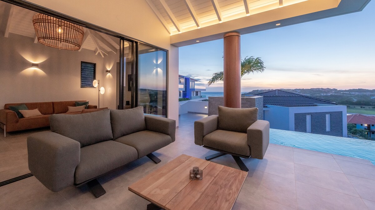 Η βίλα είναι χτισμένη σε ένα από τα ωραιότερα μέρη του Coral Estate, με εκπληκτική θέα 180 μοιρών στην Καραϊβική Θάλασσα. Η βίλα σχεδιάστηκε γύρω από την κεντρική κουζίνα με μπαρ. Κάτω από τη μεγάλη στέγη της βεράντας κάθε στέγαστρο, κάθεστε στη σκιά και πάντα φυσάει ένα αεράκι. Από το ευρύχωρο κατάστρωμα της πισίνας μπαίνετε στην πισίνα υπερχείλισης. Η βίλα είναι απομονωμένη, διαθέτει ευρύχωρο σαλόνι με μεγάλη κουζίνα με μπαρ, 4 υπνοδωμάτια, 3 μπάνια και τροπικό κήπο.