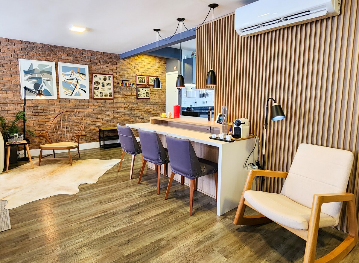 Ένα πραγματικό έργο τέχνης στην καλύτερη γειτονιά της Κουριτίμπα! Αυτό το διαμέρισμα είναι το σπίτι ενός πολύ καλαίσθητου αρχιτέκτονα που πήρε ένα σαββατικό έτος για να ταξιδέψει στον κόσμο με το βαν του, από την Ουσουάια στην Αλάσκα. Εν τω μεταξύ, παρουσίασε στους επισκέπτες της Κουριτίμπα αυτό το αριστούργημα! > Διαμονές άνω των 90 διανυκτερεύσεων > Σουίτα με μεγάλο διπλό κρεβάτι > Γραφείο "nerd zone" αναστρέψιμο για σουίτα, πτυσσόμενο διπλό κρεβάτι. Καναπές-κρεβάτι στο σαλόνι. > Φιλοξενεί 6 άτομα > Κλιματισμός σε όλους τους χώρους. > 1 θέση πάρκινγκ