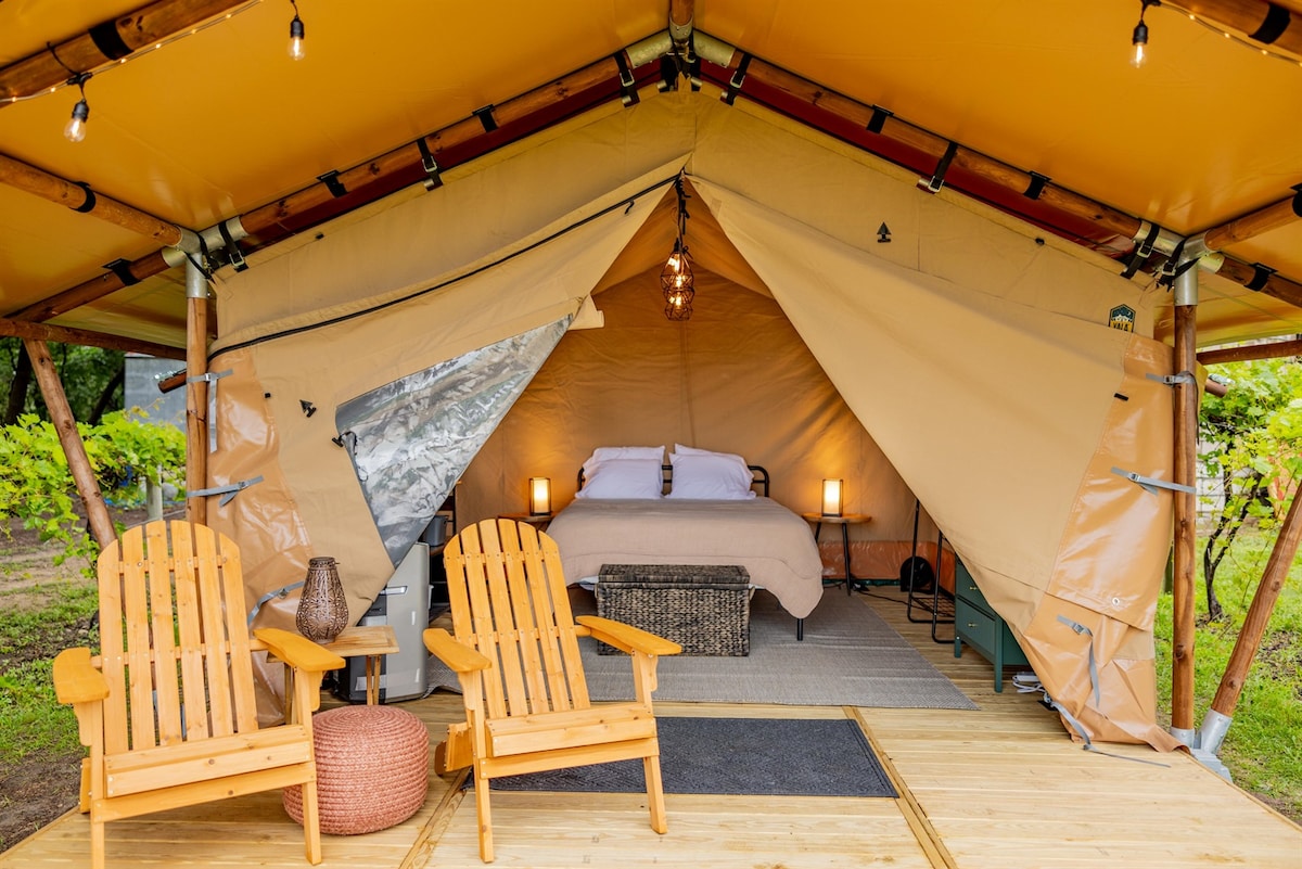 Πολυτελής κατασκήνωση ανάμεσα στα αμπέλια στο Painted Prairie Vineyard στη Μινεσότα. Ξυπνήστε με θέα στην πεδιάδα, πιείτε τοπικά κρασιά και χαλαρώστε με ζωντανή μουσική, πίτσα σε ξυλόφουρνο και έναστρο ουρανό. Κάθε σκηνή προσφέρει άνεση στη φύση, λίγα βήματα από την αίθουσα γευσιγνωσίας. Απολαύστε βόλτες σε αμπελώνες, ζεστές φωτιές και έναν ήρεμο ρυθμό, ιδανικό για μια ρομαντική απόδραση ή ένα Σαββατοκύριακο γεμάτο ξεκούραση.