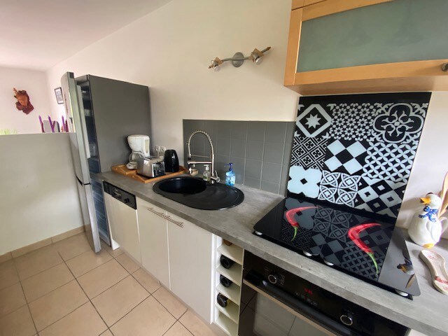 Elegant apartment in the heart of Créon's shops and the Wednesday morning market. Private parking space and a bicycle place in the building. Ideal for a professional or family stay. On the 1st floor of a stone building (without elevator), the fully equipped quality apartment is waiting for you: spacious kitchen, bathroom with large Italian shower, toilet, 1 bedroom with 1 double bed and TV, dining room, lounge. Capacity 2 persons MAXIMUM ( baby possible in supplement )