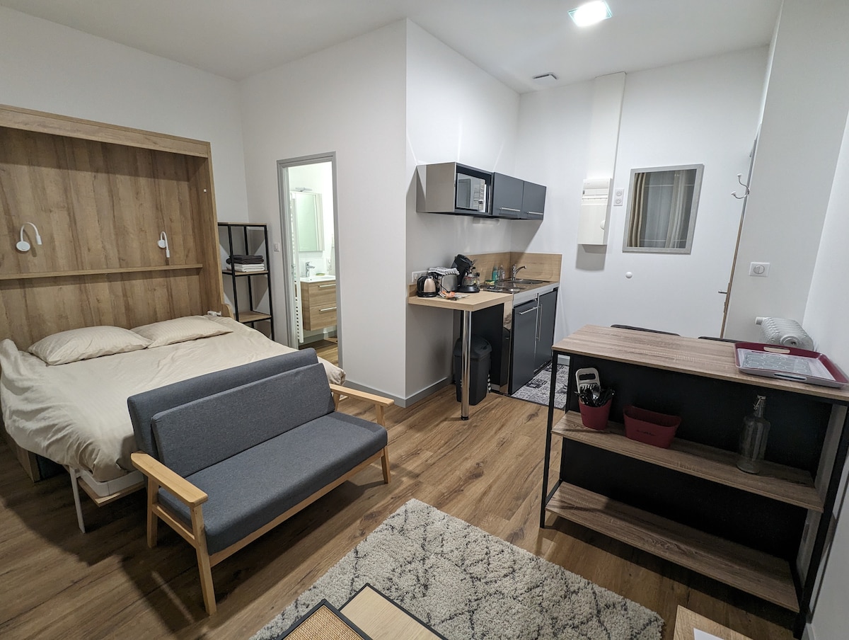 Ευρύχωρα 2 δωμάτια στην καρδιά του Vichy, κοντά στο 4 Chemins και θεραπείες. Ιδανικό για μια διαμονή ευεξίας ή ανακάλυψης. Σύγχρονες ανέσεις, πλήρως εξοπλισμένη κουζίνα, ασανσέρ. Ιδανικό για επισκέπτες σπα, ζευγάρια ή άτομα που εργάζονται εξ αποστάσεως. Ήσυχο, φωτεινό και σε ιδανική τοποθεσία για να κάνετε τα πάντα με τα πόδια. Περιλαμβάνονται σεντόνια, check-in χωρίς παρουσία οικοδεσπότη. Απολαύστε ένα άνετο διαμέρισμα στην καρδιά της Βασίλισσας των Πόλεων των Υδάτων!
