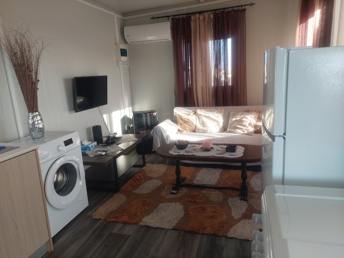 Πρόσφατα ανακαινισμένο σπιτάκι με δική του αυλή περιτριγυρισμένο με πράσινο. Το ευρύχωρο στούντιο έχει δύο πολύ αναπαυτικά κρεβάτια, ένα μεγάλο διπλό και ένα μονό. Kλιματιστικό κρύο και ζεστό αέρα Έχετε την δική σας κουζίνα με το ψυγείο, ηλεκτρικό μάτι, το τραπέζι της... Το μπάνιο είναι καινούργιο, καθαρό με ότι χρειάζεστε Σας παρέχουμε τις πετσέτες, σεντόνια, πιατικά, σαμπουάν, και άλλα που θα κάνουν την διαμονή σας ποιό ξεκούραστη