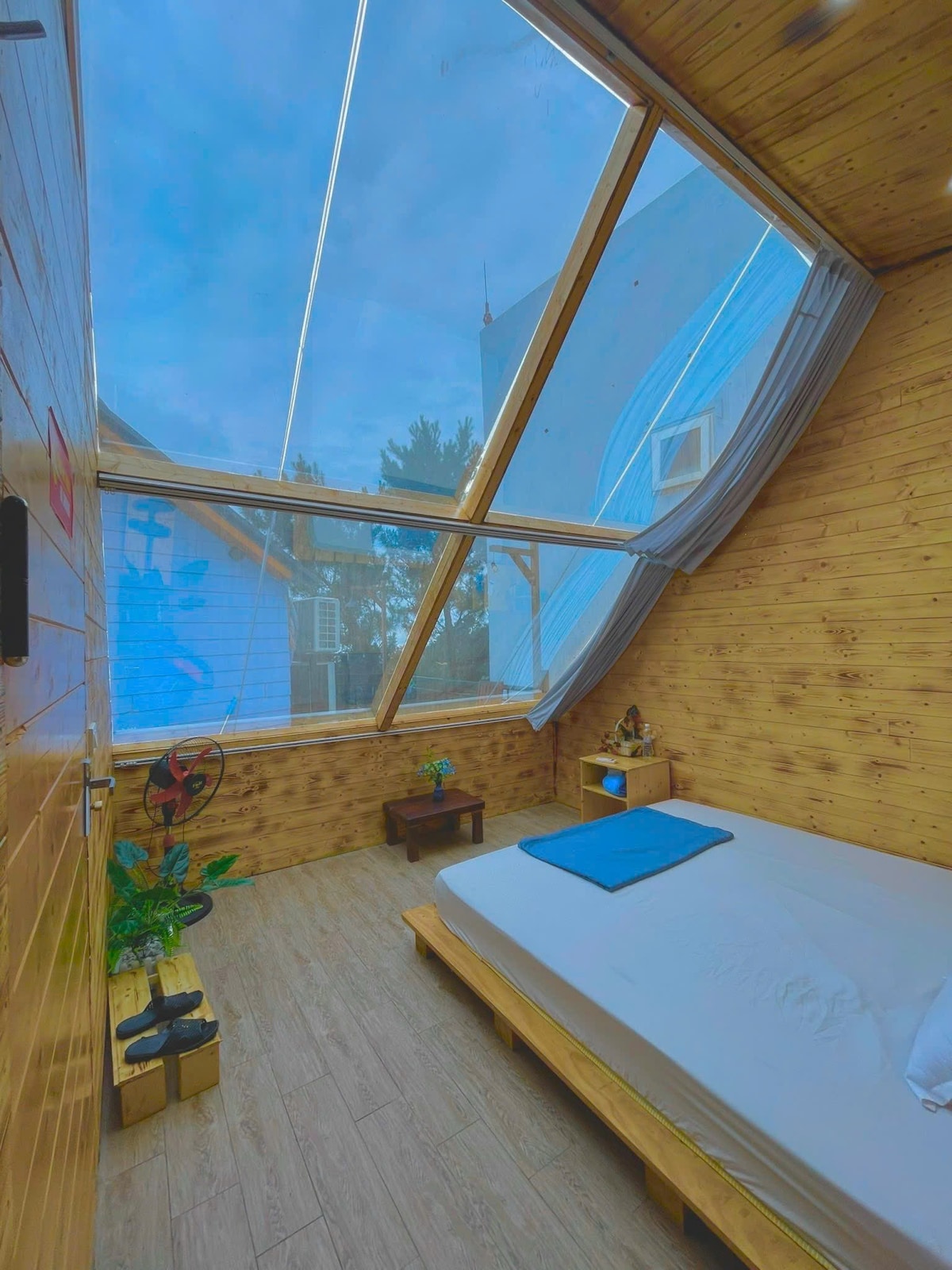 𝗞𝗘́𝗡 𝟴 - Tổ kén rộng rãi nằm lưng chừng mây Kén 8 là căn phòng có 2 giường lớn, thiết kế mở với toàn bộ mặt kính hướng ra núi, đón trọn ánh nắng sớm và cả màn sương chiều. Không gian rộng cho nhóm bạn 4-6 người Góc ngồi bệt chill chill, ngắm trời mây lãng đãng Nhà vệ sinh riêng với view cửa kính nhìn ra thiên nhiên Gần hồ bơi – thích hợp nghỉ dưỡng, chụp ảnh sống ảo Ở Kén 8, chỉ cần nằm yên một chỗ, cả khung trời Tam Đảo tự ùa vào lòng bạn