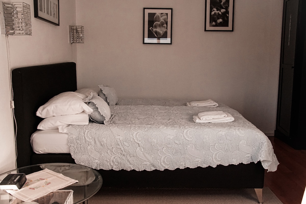 Located on the edge of Garpenberg village, by a small lake, you find this retreat-like property. Nature smiles through birch, meadows, water and pine forests. Relaxed friendly atmosphere. The main building is 125 years old with many of the original features intact. We have several single rooms and one double room. Two full bathrooms with shower/bathtub and two smaller without shower. A big kitchen that you are welcome to share. A tile stove in the living room and an infrared sauna in the basement can warm you up on chilly days! Located 180 km north of Stlm, accessible by train or bus to Hedemora (we can pick you up at the railway station). A bus route also connects Garpenberg to Hedemora and the major transportation lines. Nearby Garpenberg Castle ( 5 km) is an attraction, offering tours as well as afternoon tea and dining in an exquisite classical European Baroque environment. Stjärnsund /17 km) is a small picturesque village with major cultural center status. Concerts, shows, exhibitions and music festivals are ongoing during the summer season. You can borrow bikes for day trips. Breakfast, linen and cleaning included.
