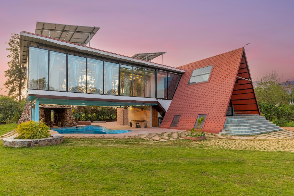 ◆Κοντινά αξιοθέατα: ✔Pani-Kot Adventure Gate – 2,3 χλμ. ✔Shiv Mandir – 7,1 χλμ. ✔Mining Lake – 3,3 χλμ. ✔Damdama – 18,2 χλμ. Αυτή η βίλα είναι ένας κρυμμένος θησαυρός μέσα στη φύση, φιλική προς τα κατοικίδια, και συνδυάζει τέλεια την αρχιτεκτονική ομορφιά με τη σύγχρονη πολυτέλεια. Η χαρακτηριστική τριγωνική γυάλινη δομή του, μια καμπυλωτή πισίνα με σιντριβάνι και ένα δεντρόσπιτο το καθιστούν ιδανικό προορισμό. Χαλαρώστε στο σαλόνι, που είναι εξοπλισμένο με επιλογές ψυχαγωγίας, όπως μπιλιάρδο, πινγκ πονγκ και air hockey.