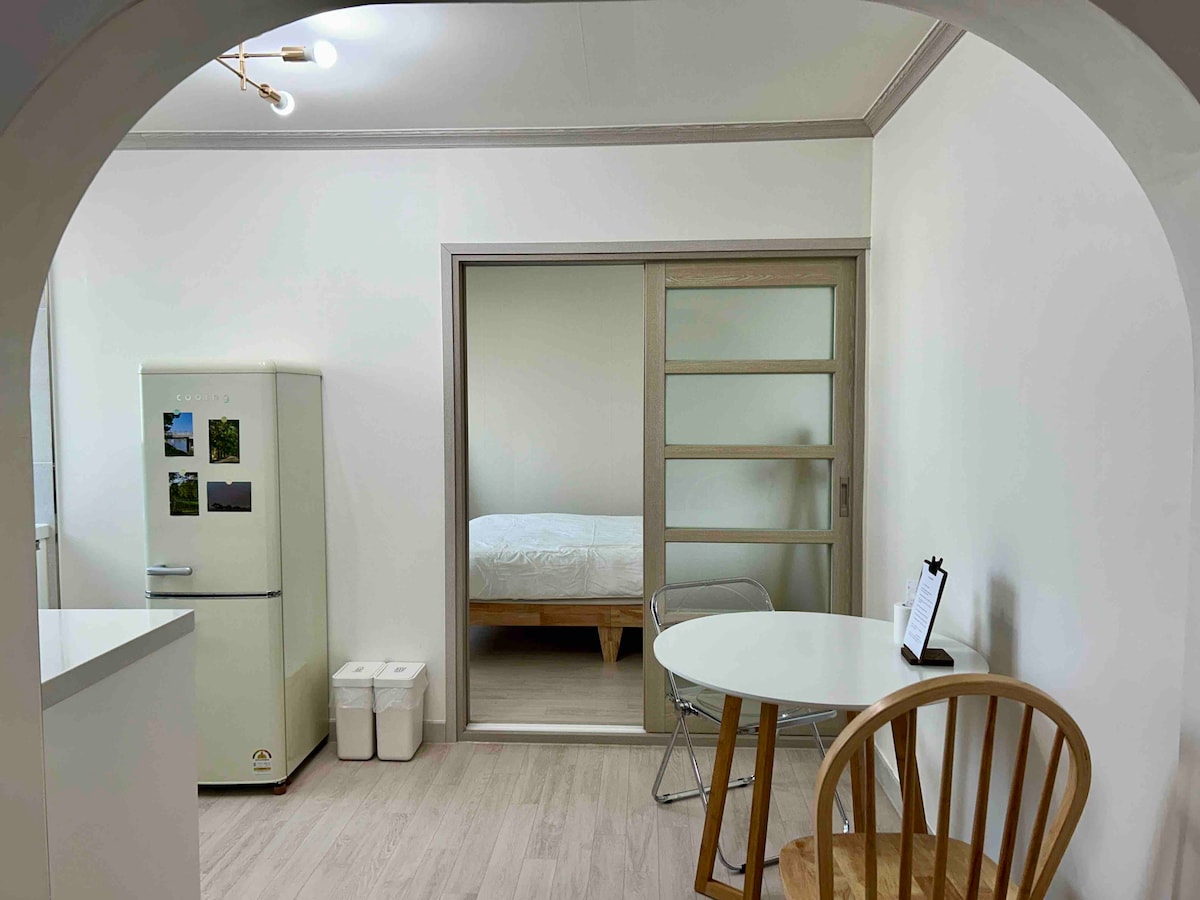 Καλησπέρα! Πρόκειται για ένα άνετο κατάλυμα που προτείνεται για ταξιδιώτες στο Damyang:) Αυτό το κατάλυμα βρίσκεται κοντά στην οδό Damyang Noodle και μπορεί να φιλοξενήσει μέχρι 4 άτομα. Παρέχονται επιπλέον κλινοσκεπάσματα (πάνω στρώμα, πάπλωμα + μαξιλάρι) για 3 ή περισσότερα άτομα. Όλα τα κοντινά τουριστικά αξιοθέατα είναι προσβάσιμα με τα πόδια, οπότε χρειάζονται περίπου 3 λεπτά με τα πόδια για την Noodle Street, 8 λεπτά για το Gwanbangjerim και 10 λεπτά για το Juknokwon. Οι καφετέριες και τα παντοπωλεία βρίσκονται σε μικρή απόσταση, διευκολύνοντας τη χρήση τους. Διατίθεται δωρεάν χώρος στάθμευσης στο δημόσιο πάρκινγκ της οδού Noodle σε απόσταση 1 λεπτού με τα πόδια, όταν χρησιμοποιείτε το δικό σας αυτοκίνητο.