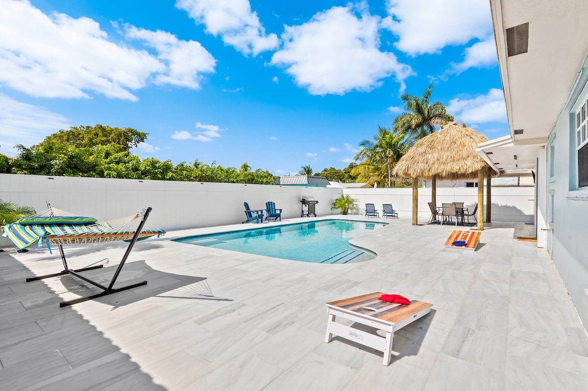 Απολαύστε τον ιδιωτικό μας παράδεισο! Εκπληκτική πίσω αυλή με τίκι και πισίνα που έχει ήλιο όλη την ημέρα, έχει ένα καταπληκτικό χτιστό παγκάκι και θερμαντικό σώμα για τους κρύους μήνες. Cornhole, foosball & arcade! Πλήρως εξοπλισμένη κουζίνα και μπάνια με όμορφη ανοιχτή διάταξη. 3 υπνοδωμάτια και ένας καναπές-κρεβάτι για συνολικά 5 κρεβάτια. Σε κεντρική τοποθεσία, 5 λεπτά από τις παραλίες FLL και το διάσημο Hollywood broadwalk. 15 λεπτά από το Hardrock Casino και το κέντρο του Ft Lauderdale. Ασφαλής και ήσυχη κατοικημένη γειτονιά. Ένα πραγματικό σπίτι μακριά από το σπίτι σας!
