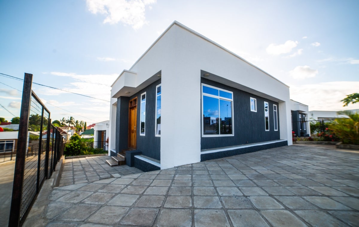 Comfort and Peace: In Mwenge mpakani, Dar es Salaam, we offer a two-bedroom house with a modern design. This house has a beautiful view of the city, a beautiful garden, and modern amenities such as fast WiFi, a modern TV, and a kitchen with modern appliances. There is also an entertainment area and adequate security. Welcome to live with us!