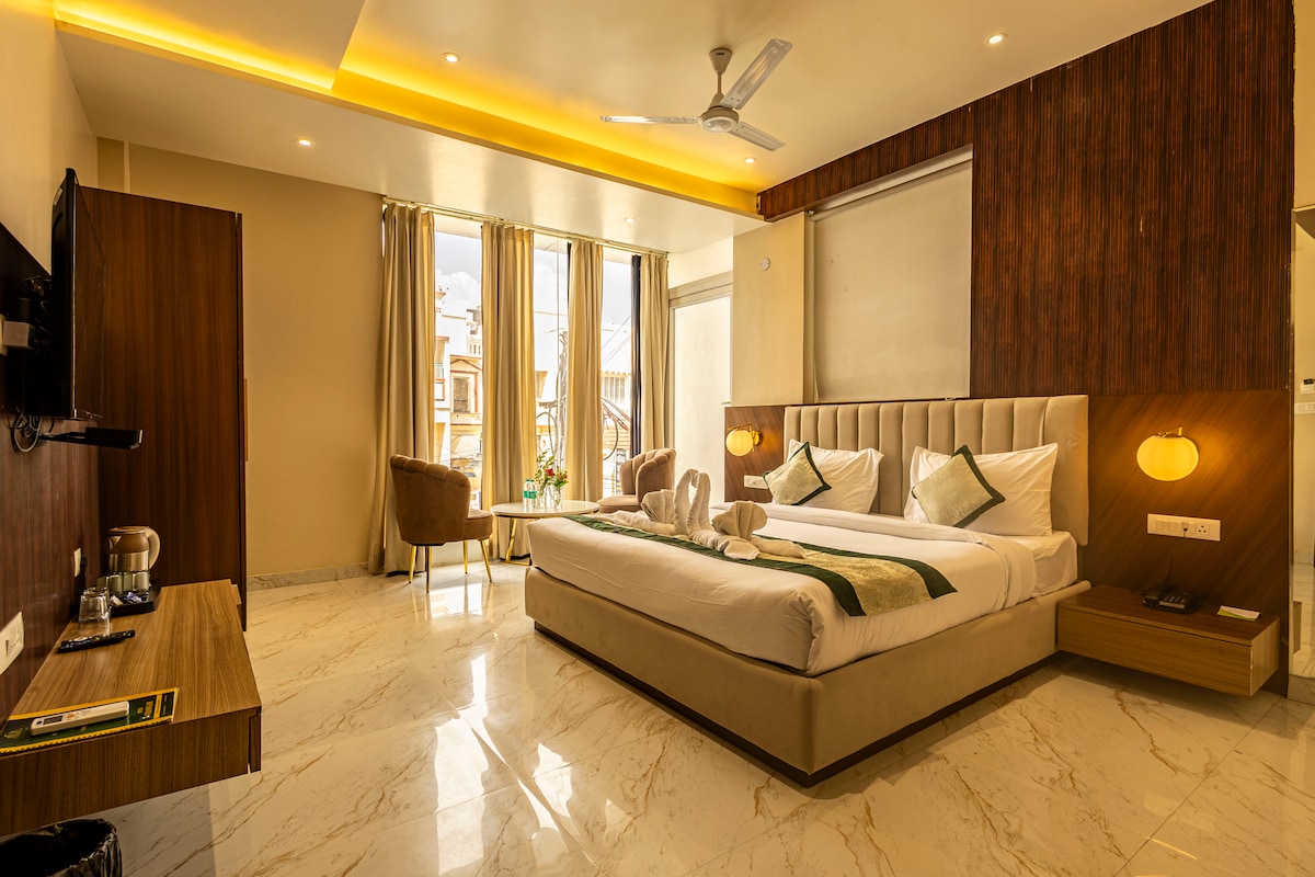 Πολυτελές δωμάτιο κοντά στον ναό Kashi Vishwanath | Διαμονή με κορυφαία άνεση και πολυτέλεια Σχεδιασμένο με μοντέρνο εσωτερικό και πολυτελείς παροχές, το δωμάτιο διαθέτει κλιματισμό, πολυτελή κλινοσκεπάσματα και ένα καλά εξοπλισμένο μπάνιο. Οι επισκέπτες μπορούν να απολαύσουν τη ζωντανή ενέργεια των δρόμων του ναού. Ιδανικός για προσκυνητές, ζευγάρια και ταξιδιώτες που αναζητούν άνεση και κομψότητα, ο χώρος μας εξασφαλίζει ηρεμία λίγα μόλις βήματα μακριά από το θείο. Κάντε κράτηση τώρα για να ζήσετε την ψυχή του Βαρανάσι τυλιγμένη στην άνεση, την πολυτέλεια και την παράδοση.