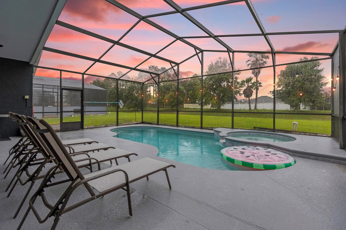 Relax with the whole family at this Stylish Magazine Style house in Davenport, just miles from Disney World Orlando Florida Theme Parks, Universal Studios, Sea World and Legoland. Enjoy our PRIVATE POOL and optional WATER HEATER & GRILL. 4 bedrooms, 2.5 bathrooms, fully equipped kitchen, Smart TV's and strong Wi-Fi all around the house. Themed Games Room in the Garage with Smart TV, Full Size Pool Table & Air Hockey. Close to Posner Village Outdoor Mall, Restaurants & Retail stores.