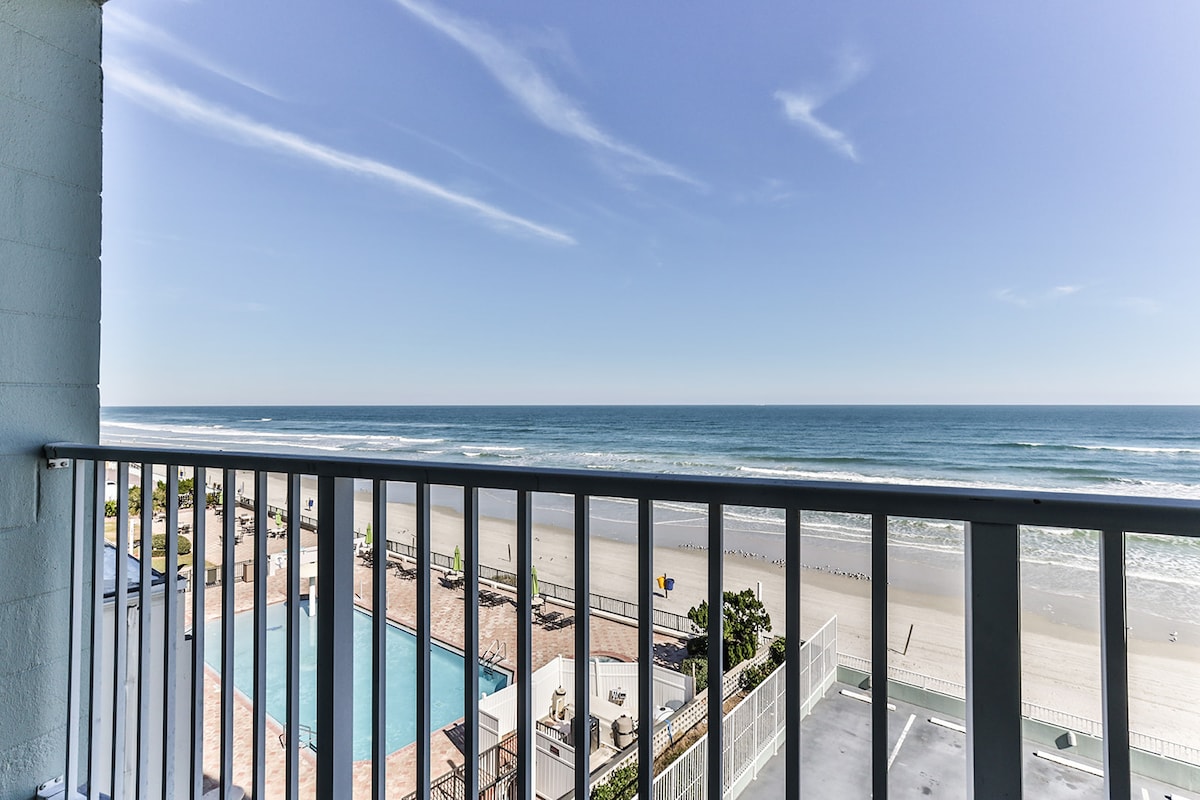 Είμαστε ένα από τα πιο κοντινά καταλύματα στην Airbnb στον παραλιακό δρόμο, στην πιο διάσημη παραλία του κόσμου με ανοιχτή πισίνα. Τηλεόραση 65 ιντσών Ελάτε να απολαύσετε το πρόσφατα επιπλωμένο στούντιό μας με εκπληκτική θέα στην παραλία από τον τελευταίο όροφο. We are the Closest AIRBNB on the Beach to the Daytona International Speedway Με υπέρδιπλο κρεβάτι και υπέρδιπλο καναπέ-κρεβάτι. Σε κεντρική τοποθεσία στην καρδιά της Daytona Beach, σε κοντινή απόσταση με τα πόδια από τον Pier Boardwalk, τα εστιατόρια και την κεντρική οδό. Διαθέτουμε ΔΩΡΕΆΝ πάρκινγκ για 1 όχημα και παρέχουμε καφέ, κρέμα, ζάχαρη, καρέκλες παραλίας.
