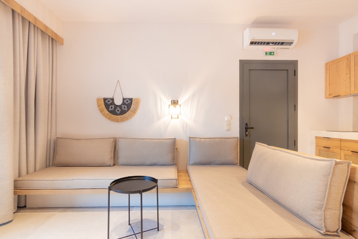 Όλη η ομάδα θα είναι άνετη σε αυτόν τον ευρύχωρο και μοναδικό χώρο δίπλα στον ωκεανό. Ο Δίας είναι παραθαλάσσιο διαμέρισμα με ευρύχωρο ιδιωτικό μπαλκόνι που θα λατρέψετε από το πρώτο δευτερόλεπτο. Είναι ιδανικό για οικογένειες ή ζευγάρια που αναζητούν ιδιωτικότητα και μια μοναδική εμπειρία. Απολαύστε μια ευρύχωρη σουίτα με μοντέρνο σχεδιασμό, πολυτελή στρώματα, πλήρως εξοπλισμένη κουζίνα και ιδιωτικό μπαλκόνι για τις πιο πολύτιμες στιγμές σας. Με εκπληκτικά ηλιοβασιλέματα, αυτό είναι το ιδανικό μέρος για να χαλαρώσετε και να απολαύσετε τις διακοπές σας δίπλα στη θάλασσα.