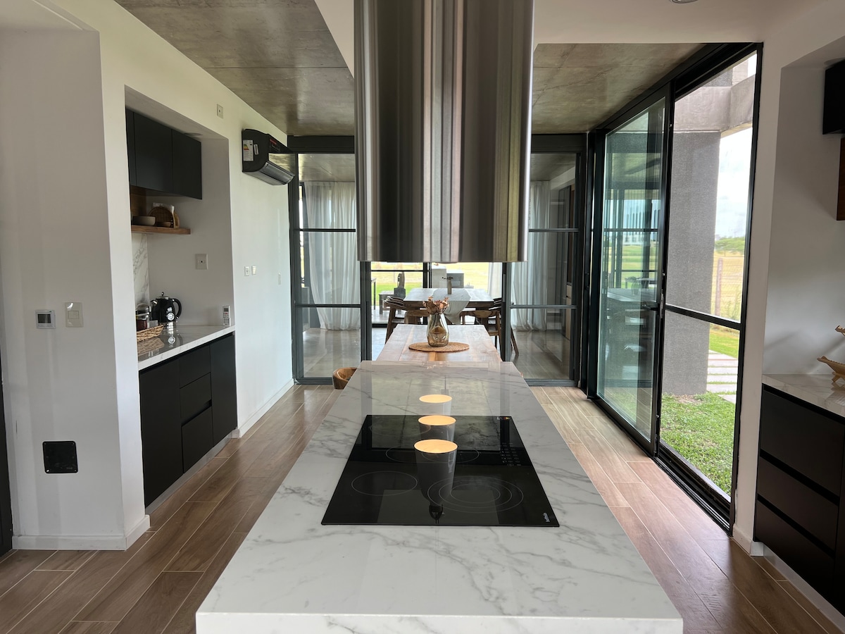 Σπίτι σε στιλ μποέμ στο Haras del Sol, ιδανικό για οικογένειες και φίλους. 4 υπνοδωμάτια, 3 μπάνια, ένα με ντους Escosesa και ένα άλλο με τζακούζι. Τουαλέτα, ενσωματωμένη κουζίνα και σαλόνι, γραφείο, γκαλερί με ψησταριά και μεγάλο πάρκο. Θερμαινόμενη πισίνα με υδρομασάζ. WiFi, Smart TV, κλιματισμός και θέρμανση σε όλους τους χώρους. Πλήρως εξοπλισμένο. Ιδιωτική γειτονιά με 24ωρη ασφάλεια, γήπεδα, γυμναστήριο, εστιατόριο, πισίνα, πλατεία και άλλα. Απολαύστε την άνεση, τη φύση και την ηρεμία στο Pilar. Ελάχιστη διαμονή 20 διανυκτερεύσεων