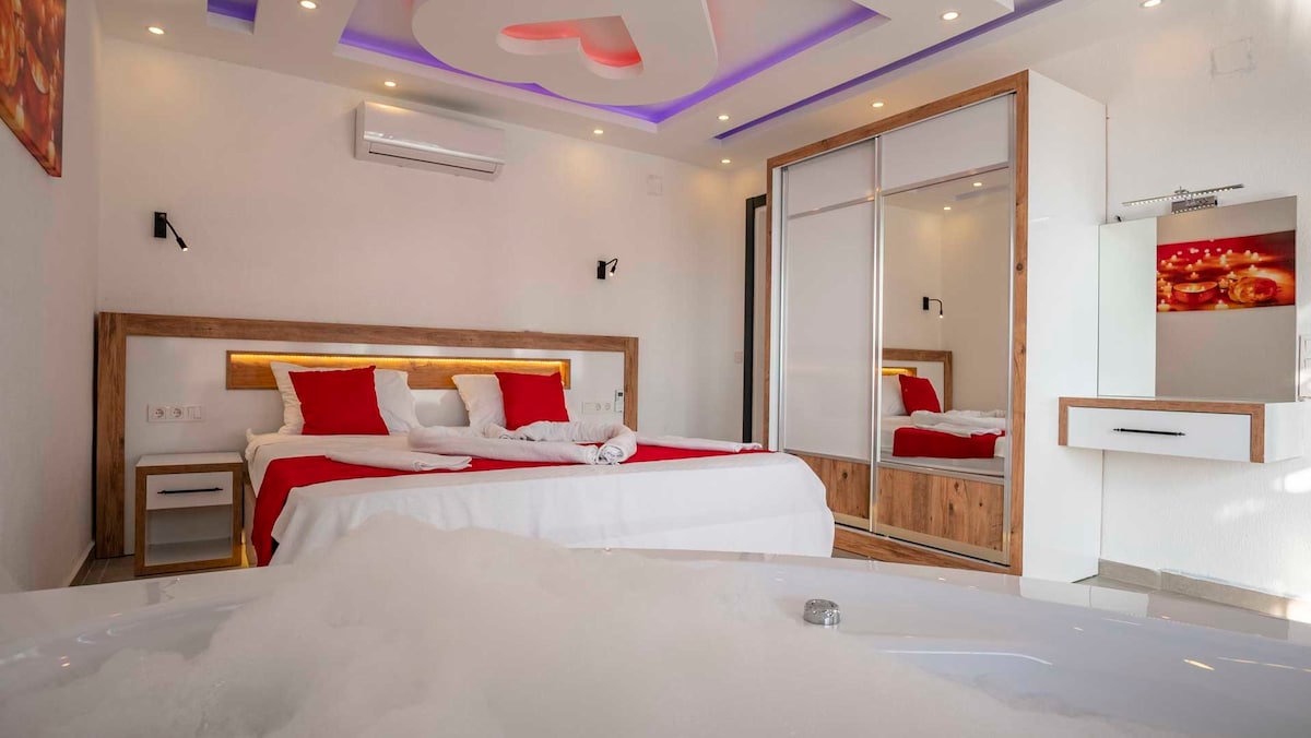 Παρέχονται κατάλληλες συνθήκες για τηλεργασία. Μπορείτε να απολαύσετε τη θέα στο ευρύχωρο τζακούζι μας στο υπνοδωμάτιό μας. Το σπίτι μας απέχει 5 λεπτά από το κέντρο και την παραλία της πόλης Kalkan. Υπάρχει ένα παντοπωλείο σε κοντινή απόσταση. Η παγκοσμίου φήμης παραλία Kaputaş απέχει 10 χιλιόμετρα, η αρχαία πόλη Patara απέχει 15 χιλιόμετρα, το φαράγγι Saklıkent απέχει 35 χιλιόμετρα.