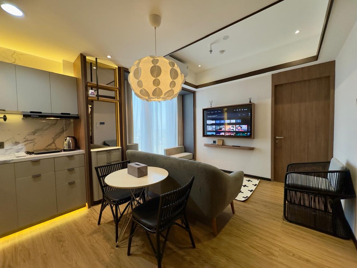 Located in the center of Yogyakarta, this studio is close by to many destinations. Only 5 minutes to the famous UGM university.. This room has everything you need, a large bed with a large sofa, a sofabed, high speed wifi and a full kitchen Free WIFI & NETFLIX The apartment building has a complete facility; an infinity swimming pool, gym, Restaurant &bar, free parking, co working space, Starbucks attached to the building.