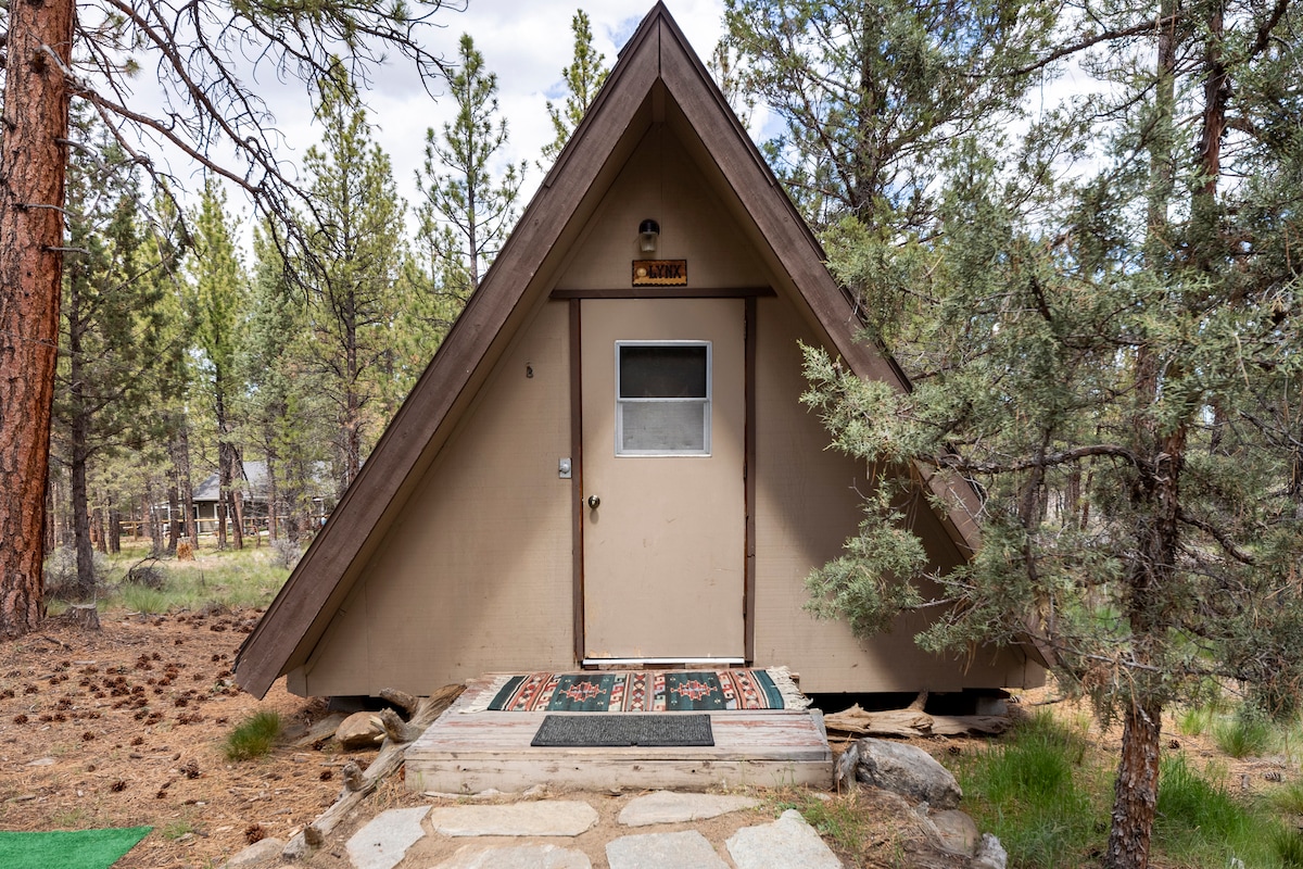 We are opening up our Aframe to host some visitors to Bend. This Aframe was originally built for the Rajneeshpuram, in Wasco county Oregon in the early 1980's. If you are not familiar with this interesting piece of Oregon history, we recommend you watch the documentary Wild Wild Country on Netflix. It is fascinating. Its a small little dwelling, we have a king sized Mattress in it (no bed frame due the space limitations), with easy access to a bathroom and shower in our home.
