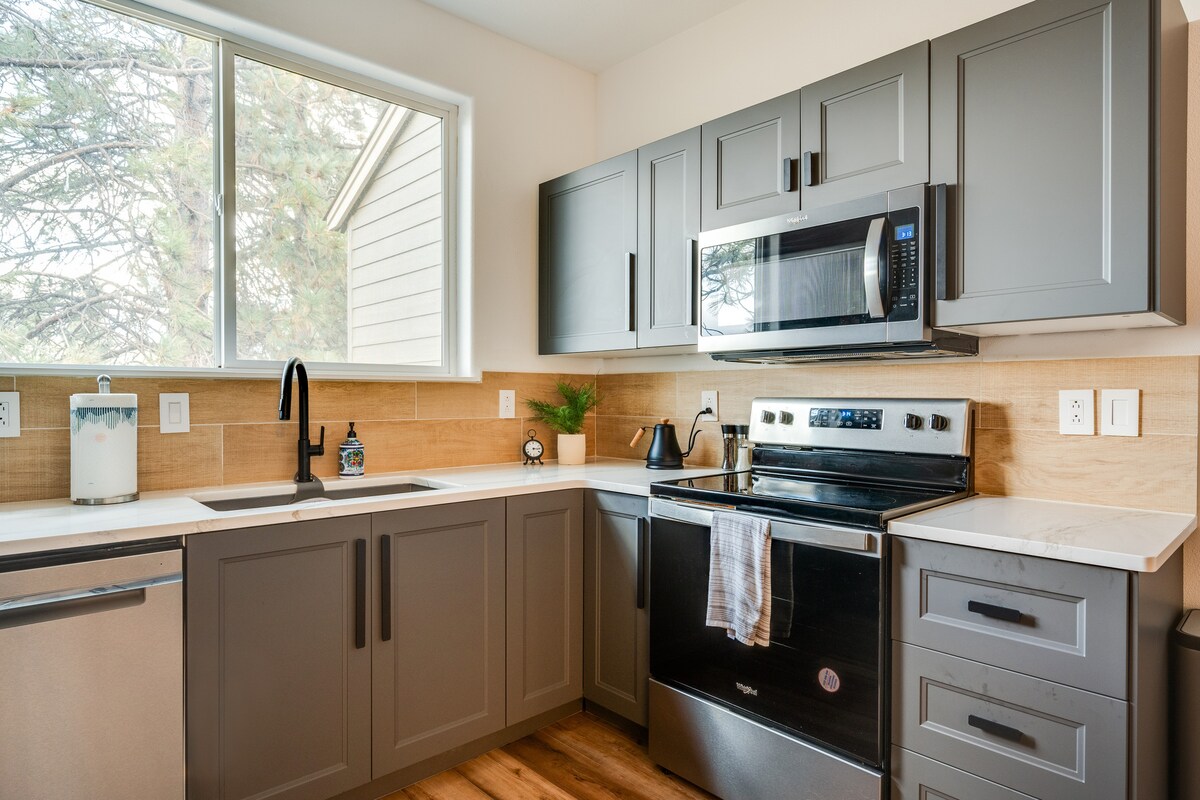 Απολαύστε τη νέα, ειδικά κατασκευασμένη βοηθητική μονάδα διαμονής μας που βρίσκεται ένα τετράγωνο μακριά από τον ποταμό Deschutes σε μια ήσυχη γειτονιά, μόλις 10 λεπτά με τα πόδια από το κέντρο της πόλης κατά μήκος του River Trail. Σε αυτόν τον μοντέρνο, φωτεινό και ιδιωτικό χώρο, θα απολαύσετε τις πολυτέλειες των ξύλινων δαπέδων, των πάγκων κουζίνας σε σχήμα καταρράκτη, ενός ενσωματωμένου χώρου εργασίας, των θερμαινόμενων πλακιδίων στο πάτωμα του μπάνιου, μιας έξυπνης τηλεόρασης 55", ενός μπάρμπεκιου και ενός τζακιού εξωτερικού χώρου, καθώς και ατελείωτο ζεστό νερό, πάρκινγκ εκτός δρόμου και φορτιστή ηλεκτρικού οχήματος. Ένα υπέρδιπλο κρεβάτι, ένα καναπέ-κρεβάτι με συρταρωτό κρεβάτι και ένας καναπές-κρεβάτι queen size.