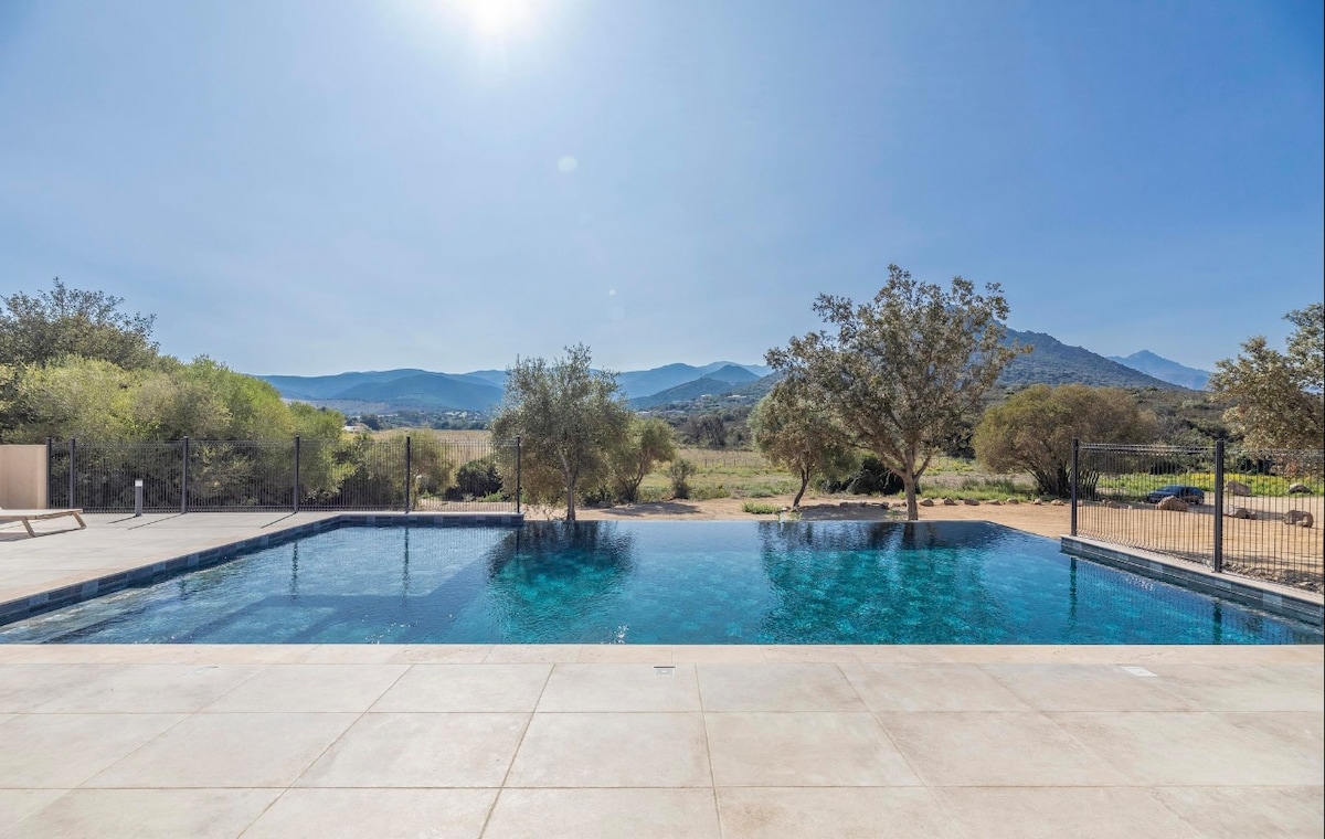 Πέτρινη κατοικία στην Κορσική με θέα στη θάλασσα, στα βουνά και στην πισίνα.