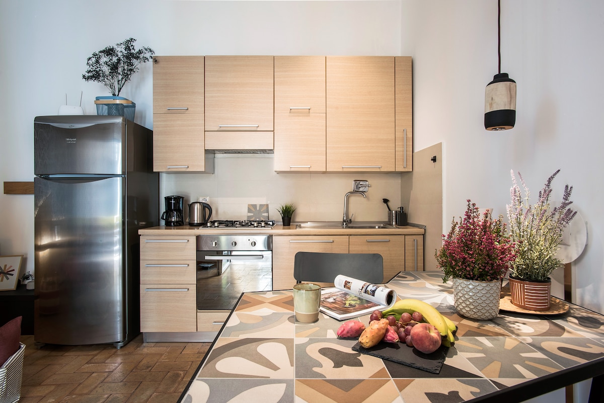 Αυτή η μοναδική ρουστίκ αλλά κομψή σοφίτα είναι γεμάτη με λεπτομέρειες από ξύλο, μέταλλο και πέτρα, όλα χειροποίητα από τον Giulio, τον ιδιοκτήτη της. Η υπέροχη βεράντα θα σας κόψει την ανάσα. Τι θα λέγατε για λίγο καφέ με τις παντόφλες σας, ενώ θα ατενίζετε το Κολοσσαίο ή θα παρακολουθείτε τον ήλιο να δύει πίσω από τη σκιά του Βατικανού από την μπανιέρα; Βρίσκεται λίγα λεπτά μακριά από τον σταθμό Termini, αλλά εξακολουθεί να είναι ένα ήσυχο σπίτι. Η πρόσβαση στο διαμέρισμα γίνεται με σκάλες. Κερνάμε πρωινό!