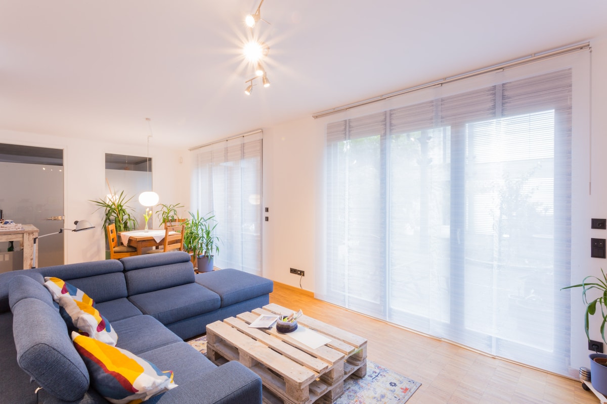 ⭐️"Σταματήστε την κύλιση, βρήκατε το κατάλυμα που ψάχνετε."⭐️ ✔️Περιλαμβάνονται κλινοσκεπάσματα και πετσέτες υψηλής ποιότητας. ✔️Δωρεάν πλυντήριο και στεγνωτήριο ρούχων ✔️Κλιματισμός σε όλα τα δωμάτια ✔️ Δωρεάν πάρκινγκ ακριβώς στο σπίτι ✔️ Μεγάλη κουζίνα με νησίδα μαγειρέματος και 4 καθίσματα μπαρ ✔️ Ιδανικό για οικογένειες και παιδιά – ένας παιδικός παράδεισος ✔️Γρήγορη σύνδεση με τη Φρανκφούρτη / εμπορική έκθεση (Messe) ✔️ Ιδιωτική αυλή/κήπος με πόρτα που κλειδώνει. ✔️ Ταχύτατο Wifi και όλες οι υπηρεσίες streaming ✔️ Μεγάλο τραπέζι για τουλάχιστον 8 άτομα