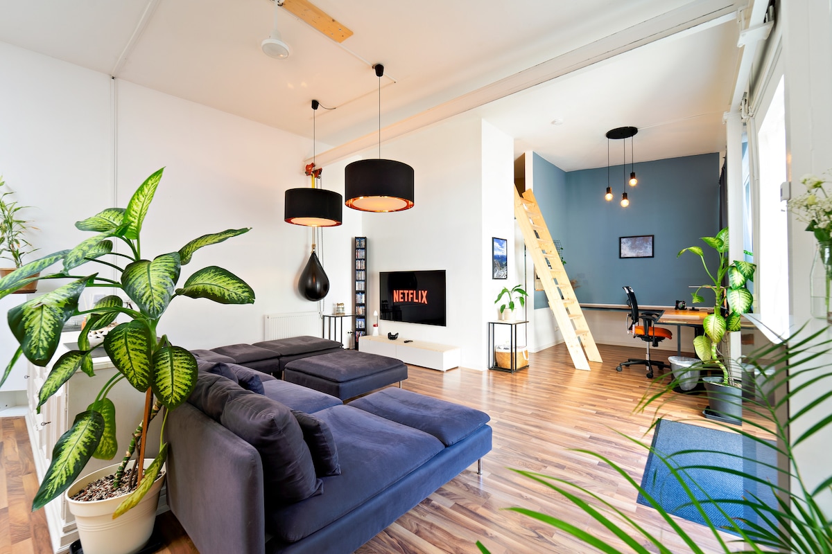 Απολαύστε μια εμπειρία γεμάτη στιλ σε αυτήν την ιδιοκτησία που βρίσκεται κεντρικά. Σοφίτα με σχεδιασμό, πλήρως εξοπλισμένη κουζίνα, άνετο κομψό υπνοδωμάτιο με άνετο κρεβάτι queen size (θέα στο ποτάμι από το παράθυρο), γρήγορη ταχύτητα Wi-Fi (καλά προσαρμοσμένο για εργασία από το σπίτι). Δωρεάν πάρκινγκ σε όλους τους δρόμους γύρω από το κτίριο. Απευθείας σύνδεση με τα μέσα μαζικής μεταφοράς προς το αεροδρόμιο, το Messe (εκθεσιακό κέντρο) και τον κεντρικό σταθμό (Hbf). Μπορεί να φιλοξενήσει έως 3 άτομα (υπάρχει επιπλέον πληρωμή αν θέλετε να χρησιμοποιήσετε τον καναπέ για ύπνο)