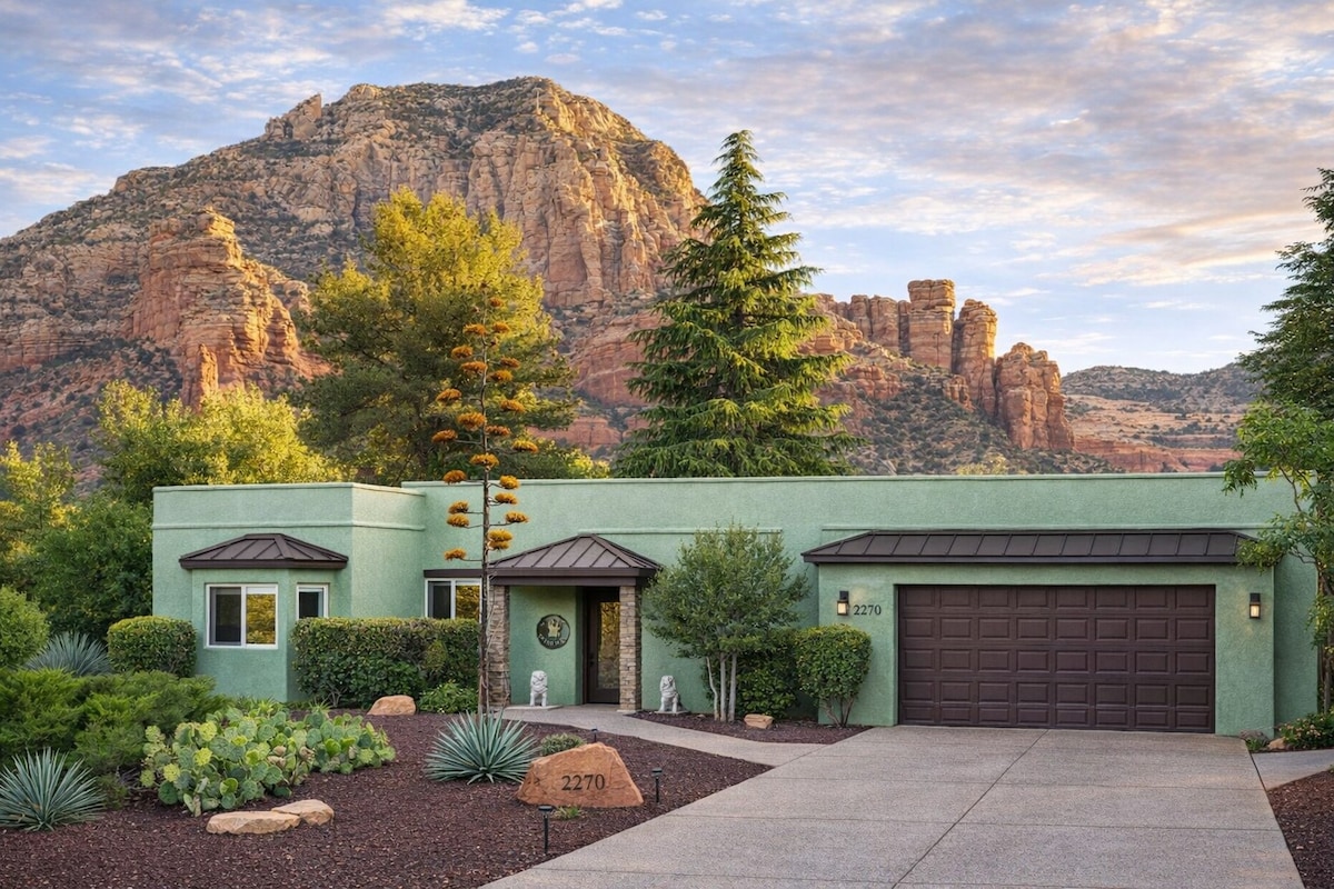 Your Desert Rose Oasis awaits with unblockable red rock views and privacy from this custom home on a quiet cul de sac in the coveted Chapel area of Sedona. The architecture of this home, designed by John Kamas, was built to maximize mountain views from every room. This home is the perfect getaway that’s within walking distance of world-class trails for exploring, hiking, and biking; and offers large entertaining spaces both indoors and out.