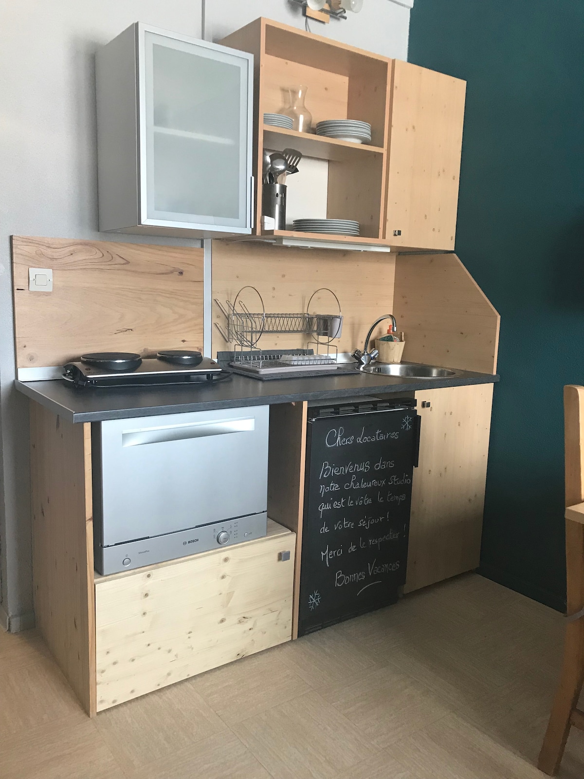 Location studio de 18 m2 rénové à Superdévoluy pour 4 personnes, au pied des pistes. Cuisine équipée: frigo, plaque 2 feux à induction , lave vaisselle four micro onde combiné, cafetière Dolce Gusto, grille pain. Couchages : un canapé convertible neuf (140), un lit mezzanine pour 2. Couettes et couvertures fournies ainsi que 4 oreillers. TV, Wifi gratuit. Local à skis au sous sol. Appartement Superdévoluy le Petit Norvégien