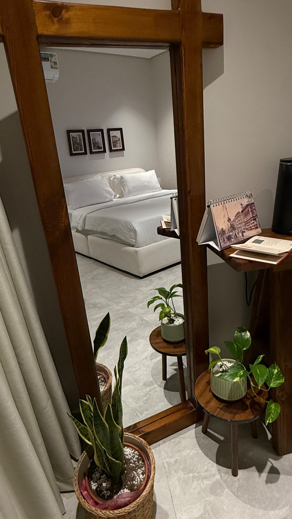استمتع بإقامة مريحة في غرفة أنيقة بتصميم عصري وأجواء هادئة. سرير مريح، منطقة جلوس داخلية، إضاءة دافئة، وثلاجة صغيرة تضيف لمسة عملية لإقامتك. خيار مثالي للباحثين عن الراحة والخصوصية في إقامة قصيرة مميزة