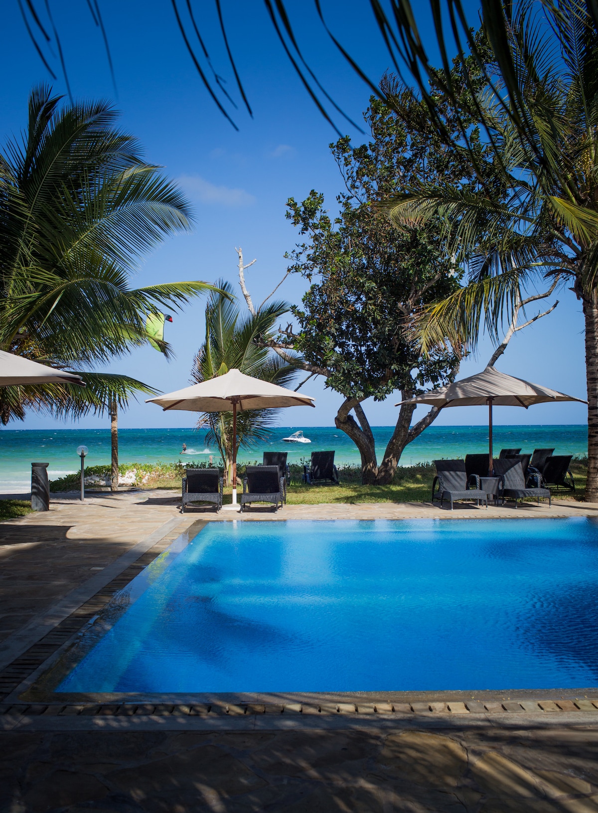 Το Pool House είναι ένα από τα κορυφαία παραθαλάσσια διαμερίσματα του Diani με ένα υπνοδωμάτιο και ιδιωτική πισίνα. Περπατήστε μέχρι την παραλία σε 3 λεπτά. Wifi με ίνες υψηλής ταχύτητας. Χρειάζεστε περισσότερα δωμάτια; Τότε κάντε κράτηση στο The Tree House και στο Beach House στον επάνω όροφο! Η βίλα βρίσκεται σε ένα ασφαλές οικιστικό συγκρότημα 4,5 στρεμμάτων στην πρώτη σειρά της παραλίας Diani. Θέα στη θάλασσα από την ιδιωτική σας πισίνα. Κεντρική, κοντά σε καταστήματα και εστιατόρια, τράπεζες και ιατρική περίθαλψη. Προσωπικό στον χώρο για να καθαρίσετε και να μαγειρέψετε, μπορείτε πραγματικά να πάρετε λίγο χρόνο και να απολαύσετε. 10 λεπτά από το αεροδρόμιο Diani.