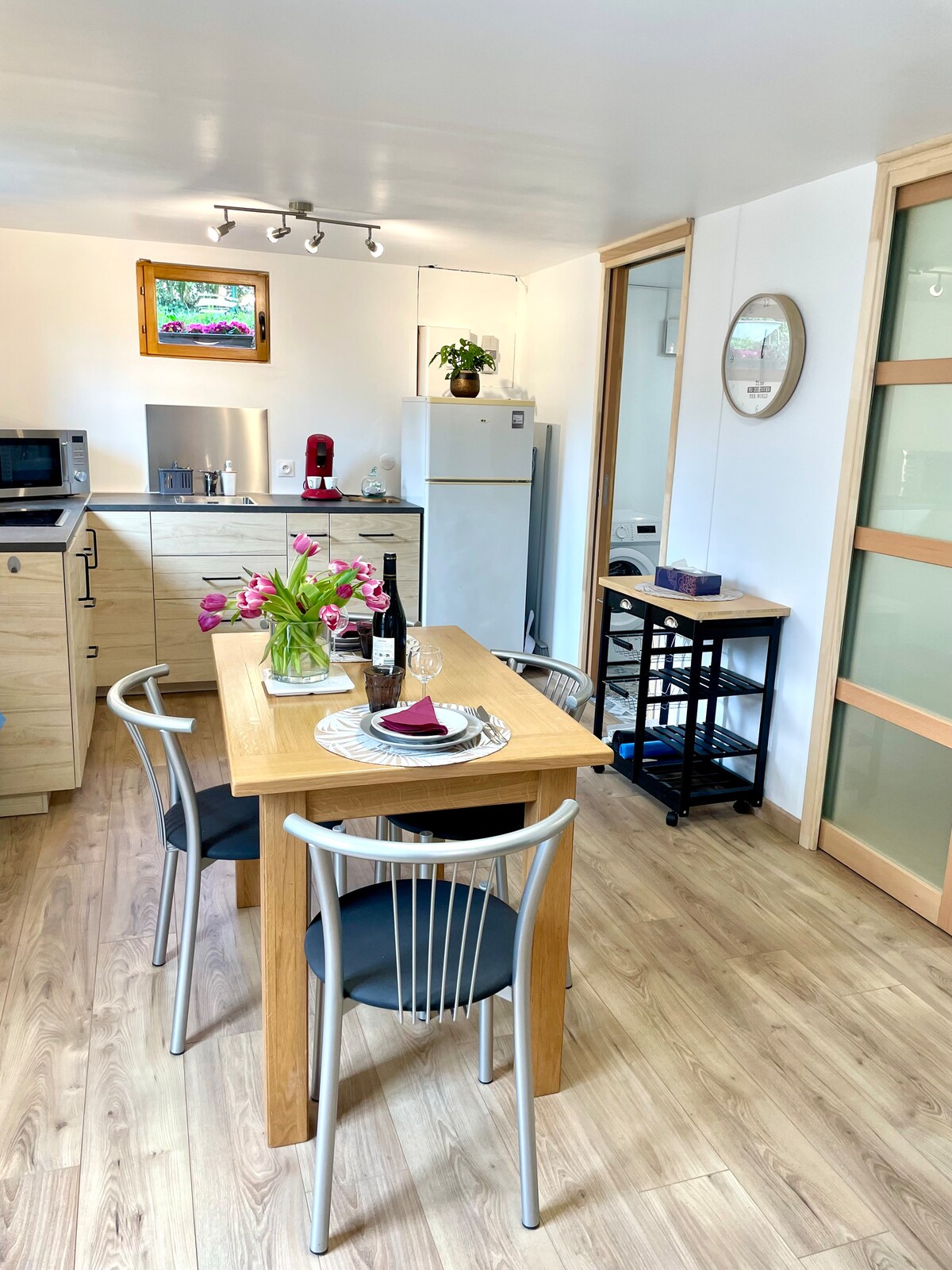 Αυτό το πολύχρωμο εξοχικό σπίτι σε στιλ δεκαετίας του εβδομήντα βρίσκεται στη Νορμανδία, στα μισά της διαδρομής μεταξύ της Ντιέπ και της Ρουέν, 5 λεπτά από τον αυτοκινητόδρομο, από τον ηλεκτρικό σταθμό υπερφόρτισης TESLA και 10 λεπτά από τον σιδηροδρομικό σταθμό SNCF! Ανακαινισμένο το 2024, αυτό το εξοχικό μπορεί να φιλοξενήσει 4 άτομα (2 ενήλικες και 2 παιδιά). - Ανοιχτό δωμάτιο με νότιο προσανατολισμό, φωτεινό, με θέα στα χωράφια, τη λίμνη και τις ανεμογεννήτριες, - Μεζονέτα με ανοιχτό υπνοδωμάτιο με 2 μονά κρεβάτια, - Μπάνιο & ντους / κουζίνα, - Περιφραγμένος κήπος, - Ιδιωτικός χώρος στάθμευσης.