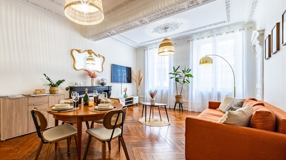 24/7 CHECK-IN ΧΩΡΙΣ ΠΑΡΟΥΣΙΑ ΠΡΟΣΩΠΟΥ ΔΩΡΕΆΝ ΑΚΎΡΩΣΗ έως και 24 ώρες πριν από την άφιξη Απλή ΣΤΑΘΜΕΥΣΗ 2-5 ΛΕΠΤΆ με τα πόδια ΣΙΔΗΡΟΔΡΟΜΙΚΌΣ ΣΤΆΘΜΟΣ, ΠΛΑΤΕΊΑ DARCY, ΤΡΑΜ, PALAIS DES DUKES, CENTRE VILLE-HISTORIQUE Εξαιρετικά κεντρική τοποθεσία για αυτό το κομψό και εκλεπτυσμένο διαμέρισμα με χαρακτήρα. Με εκπληκτική θέα στον καθεδρικό ναό Saint-Bénigne, αυτή η σουίτα 40 τ.μ. έχει ανακαινιστεί και εξοπλιστεί με τέλεια ισορροπία πολυτέλειας και κομψότητας. Ξύλινα στοιχεία, γυμνές πέτρες, μεταξένιες υφές… Η Ντιζόν αποκαλύπτεται στις πιο όμορφες μέρες της!