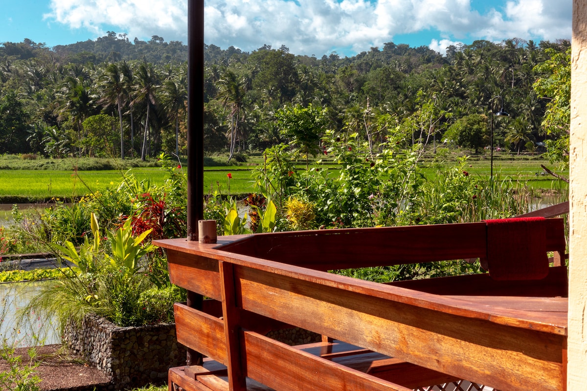 Relax in our Paddy Rooms! These air-conditioned rooms feature hot and cold showers, bidets, bathroom amenities, a safety deposit box, cable TV, Wi-Fi, free drinking water, and a private balcony. Just a short walk to the pool, jacuzzi, restaurant, and beach. Savor stunning mountain and rice field views—perfect for nature lovers and relaxation seekers!