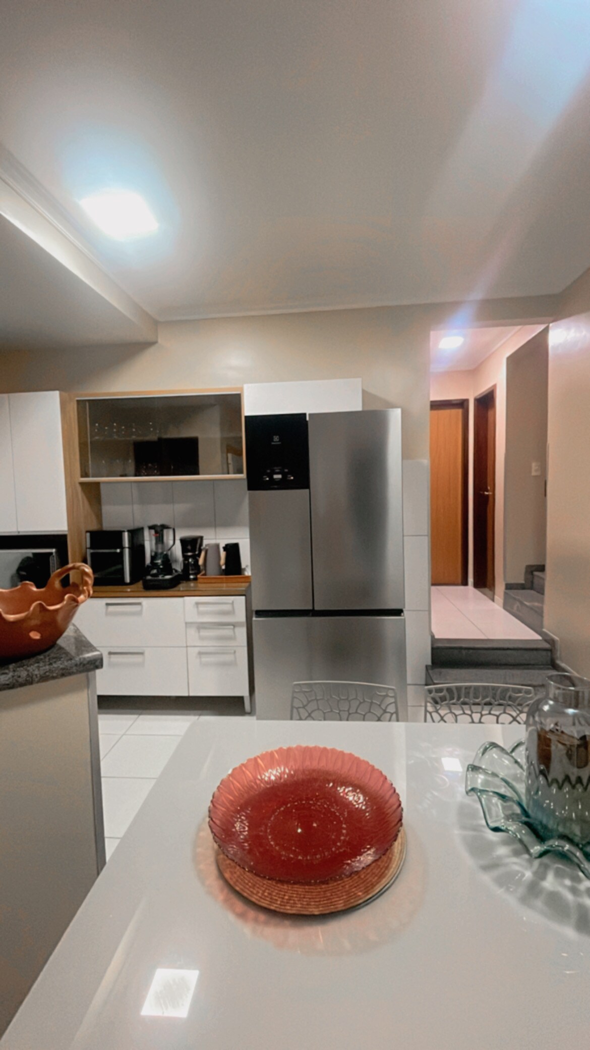 Όμορφο σπίτι, υψηλών προδιαγραφών, με τα πόδια στην άμμο, που βρίσκεται στην καλύτερη πολυτελή πολυκατοικία του Arraial D'ajuda ( Condomínio Águas D 'ajuda ). Το σπίτι μας είναι κλιματιζόμενο, έχει 4 σουίτες ( δύο με υπέρδιπλο κρεβάτι, δύο με 2 μονά κρεβάτια (τα οποία μπορούν να γίνουν υπέρδιπλα ) και σε μία σουίτα έχει ένα σαλόνι με δύο μονά στρώματα) . Στο ισόγειο έχουμε μια πλήρως εξοπλισμένη κουζίνα με ένα μεγάλο σαλόνι και τραπεζαρία (με τουαλέτα) και ένα μεγάλο μπαλκόνι (με καναπέ, αιώρα και 8θέσιο τραπέζι).