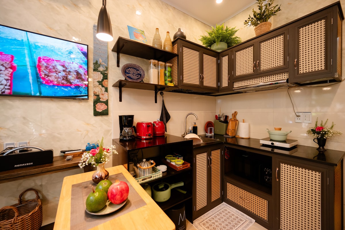 Πολυτελές διαμέρισμα 2 υπνοδωματίων – 2 μπάνια με οργανικό βοτανικό στυλ, πλήρως εξοπλισμένο: πλυντήριο ρούχων, κλειστό μπάνιο, πιστολάκι μαλλιών, δωρεάν wifi, κουζίνα και τραπεζαρία. Κεντρική τοποθεσία, γρήγορη σύνδεση: • Απέναντι από το σούπερ μάρκετ GO. • Βρίσκεται σε έναν δρόμο με πολλά πολυτελή εστιατόρια και καφετέριες. • 10 λεπτά από το Εμπορικό Κέντρο Aeon. • 10 λεπτά από το αεροδρόμιο Cat Bi. • 10 λεπτά από την Όπερα του Χάι Φόνγκ. • 10 λεπτά από την αγορά Luong Van Can – γαστρονομικός παράδεισος. • 15 λεπτά από το VinWonders. • 8 λεπτά από το κέντρο της οδού Τέι – μπαρ και σαλόνι.