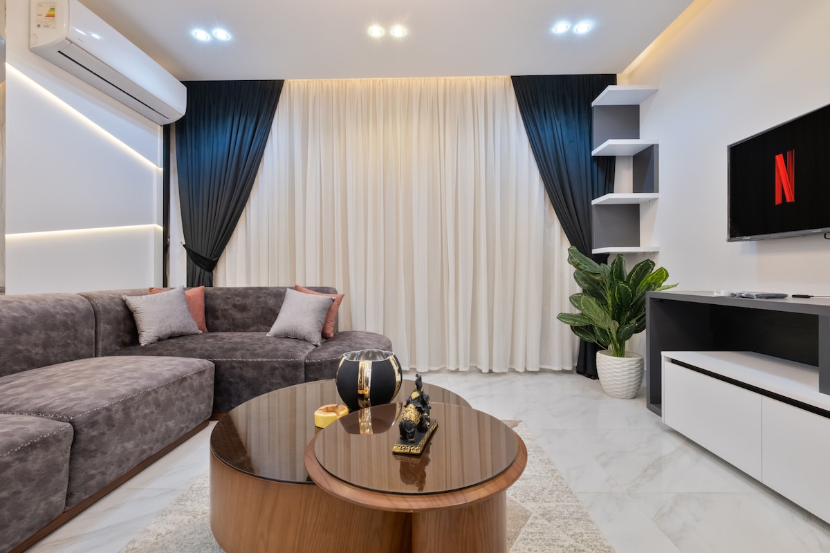 The apartment is located in the most lively place in Giza - Mohandiseen - Shehab Street, and provides a wonderful view from above. Designed for vacationing with family and friends, with a hotel-like ambiance, the apartment is luxuriously furnished to give guests the ultimate relaxing experience during their stay. The apartment offers all the electrical amenities guests require, with 65-inch screens distributed throughout the apartment and bedrooms for watching movie nights.