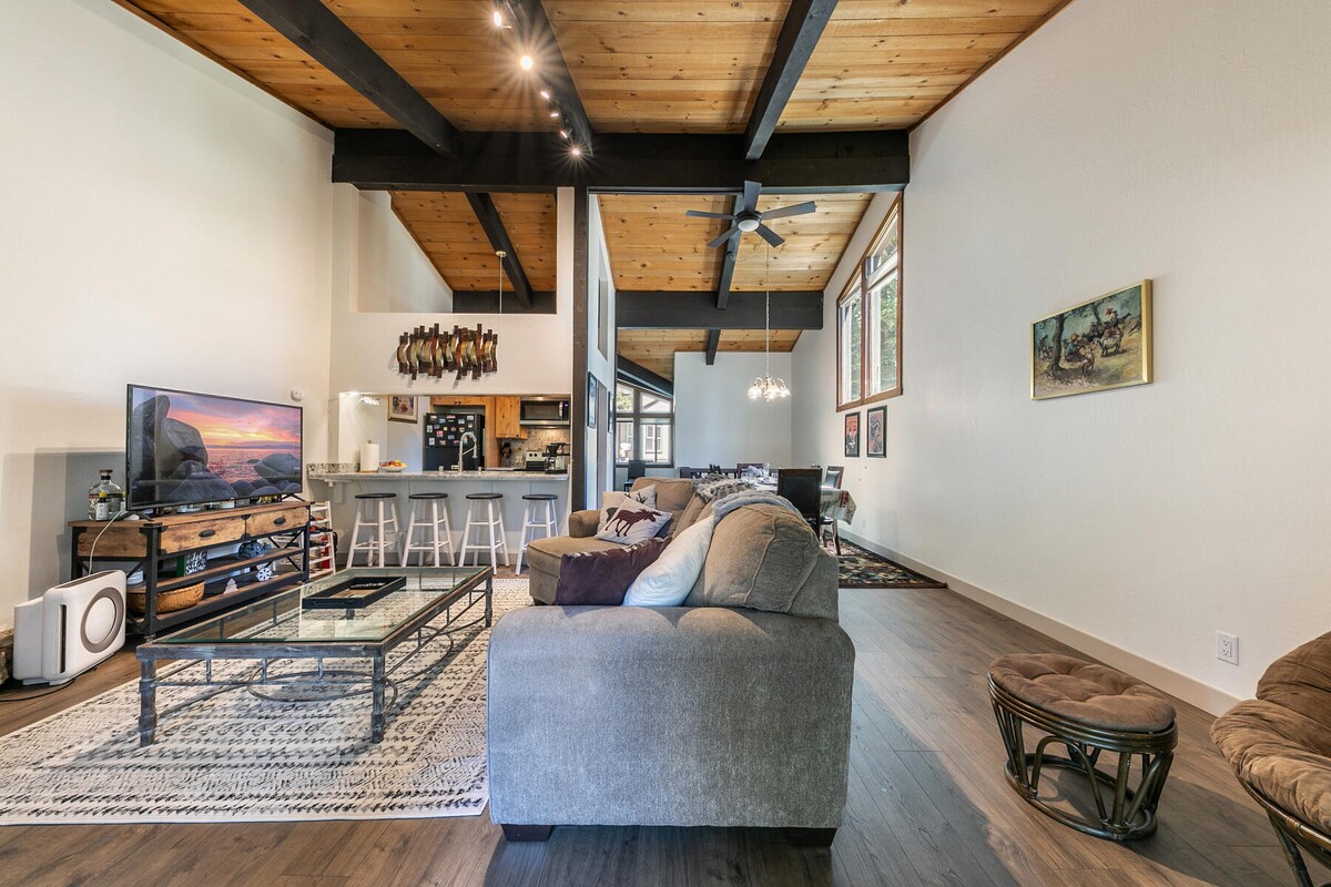 Ιδανικό για μια ρομαντική περιπετειώδη απόδραση. Απολαύστε τον πρωινό σας καφέ στην ιδιωτική βεράντα πολύ πάνω από το δάσος. Έτοιμοι για πεζοπορία ή ποδήλατο; Δεν χρειάζεται το αυτοκίνητο, η πίσω αυλή οδηγεί στα μονοπάτια στο πάρκο Burton Creek State Park και στο μονοπάτι Tahoe Rim Trail. Ή οδηγήστε 5 λεπτά στις καλύτερες παραλίες της Βόρειας Ακτής, οι καρέκλες και οι ομπρέλες περιλαμβάνονται. Ένα ζεστό τζακούζι ακολουθούμενο από happy hour στη βεράντα; Απολαύστε το βράδυ στο ευρύχωρο, φωτεινό και ευάερο ιδιωτικό διαμέρισμά σας, με πλήρως εξοπλισμένη κουζίνα.