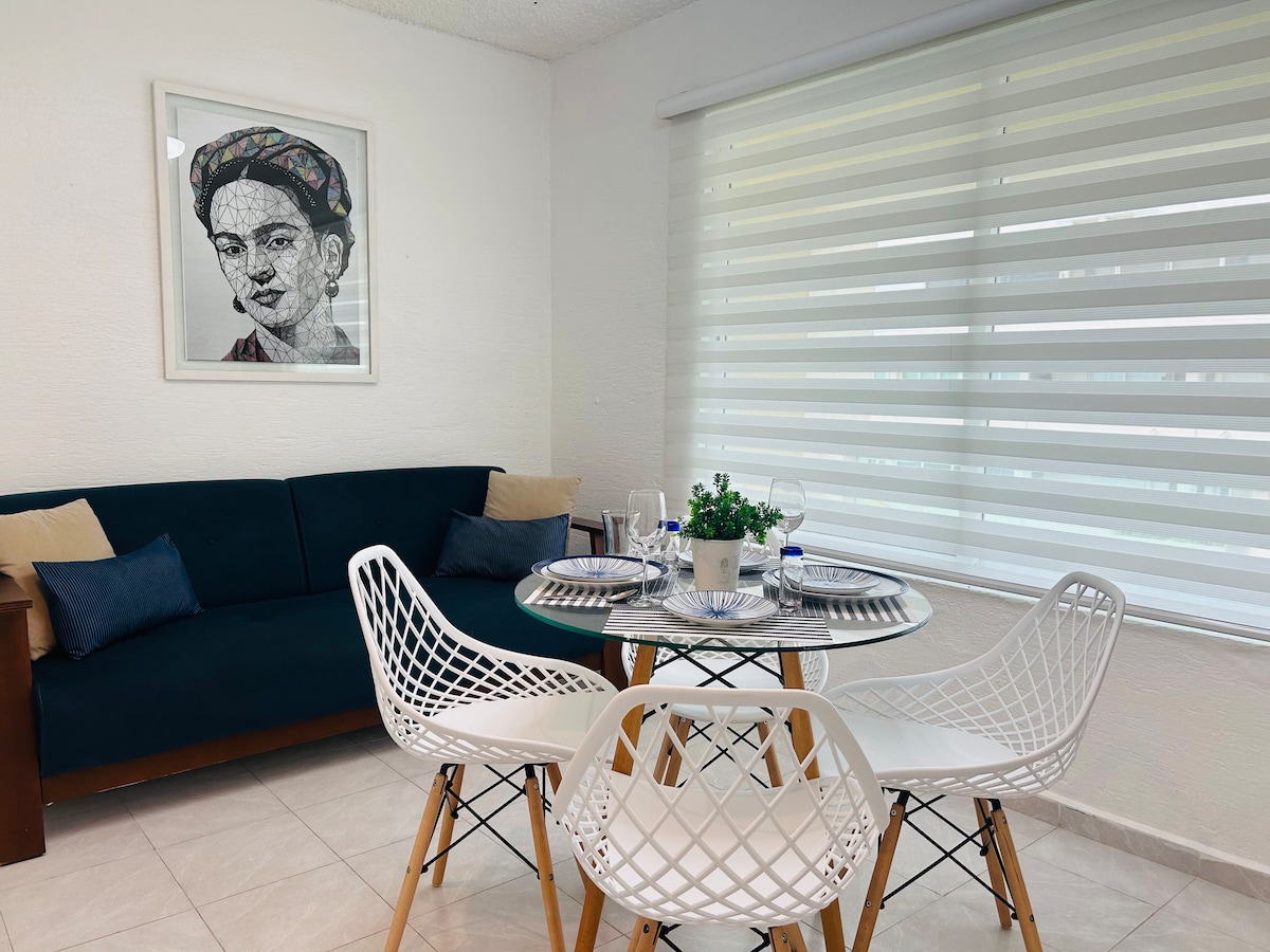 Άνετο διαμέρισμα στην καλύτερη περιοχή του Κανκούν, πολύ κοντά σε εστιατόρια, κλαμπ, σούπερ μάρκετ, γήπεδα γκολφ. Έχουμε πρόσβαση σε ιδιωτική παραλία, περιλαμβάνεται η χρήση της πισίνας και των ξαπλωστρών. Η θέα από το δωμάτιο είναι εκπληκτική. Κοντά στο αεροδρόμιο, γεγονός που μας επιτρέπει να είμαστε ένας χώρος διαμονής για πτήσεις ανταπόκρισης, χωρίς να ανησυχούμε για τις μεταφορές στη Ριβιέρα. Ιδανικό για άτομα που αναζητούν ξεκούραση, όμορφη θέα και εργασία εξ αποστάσεως! Νιόπαντροι❤️