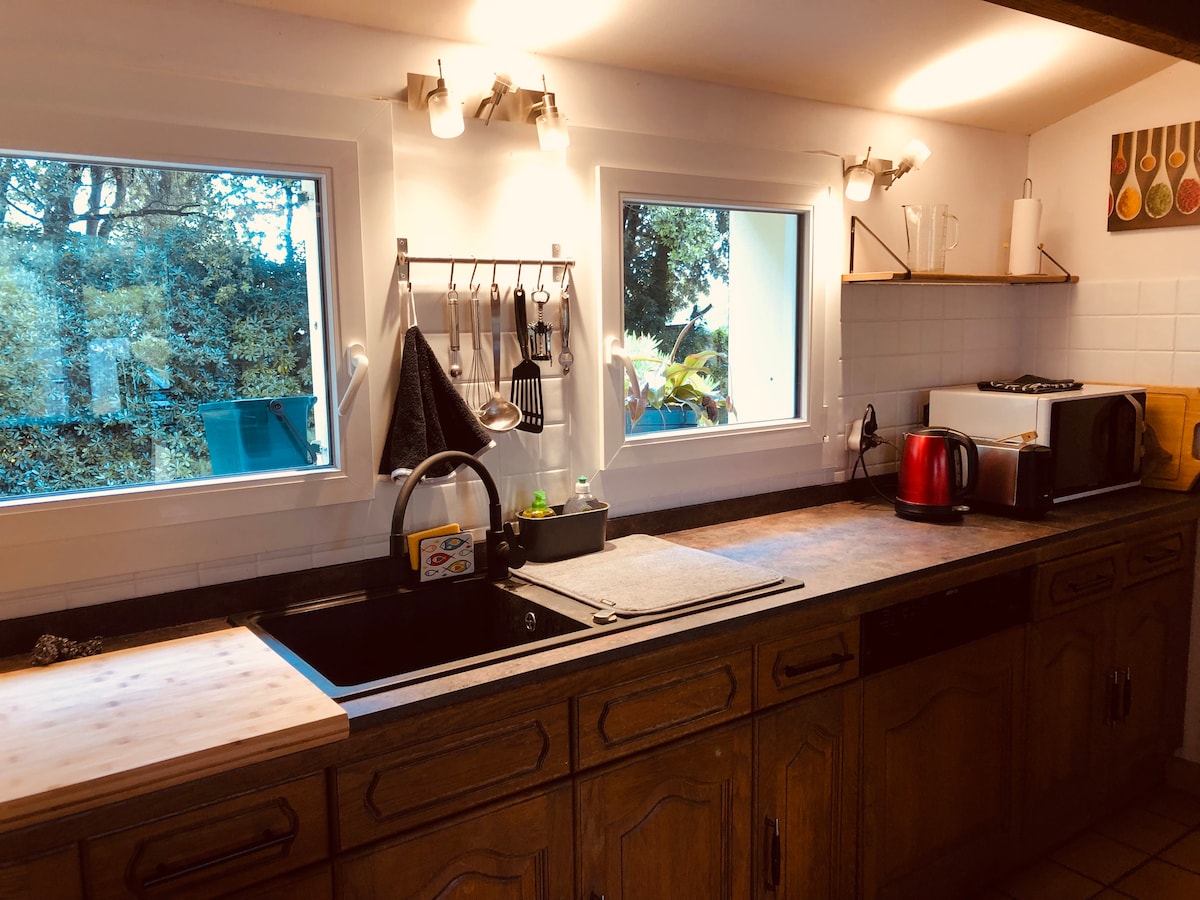 Αυτό το σπίτι 77 m2 είναι ιδανικό για 6 άτομα. Αποτελείται από ένα μεγάλο σαλόνι με μια πλήρως εξοπλισμένη κουζίνα Mobalpa που ανοίγει στο σαλόνι. Υπάρχουν τρία υπνοδωμάτια, δύο με ένα διπλό κρεβάτι (160 εκατοστά) και το τρίτο με δύο μονά κρεβάτια που μπορούν να ενωθούν εάν χρειαστεί. Το σπίτι ανοίγει σε έναν μικρό κήπο με γωνιά μπάρμπεκιου. Τα + - Κλιματισμός με αντίστροφη λειτουργία στο κύριο δωμάτιο - Πρόσβαση ΑΜΕΑ (άτομα με μειωμένη κινητικότητα)
