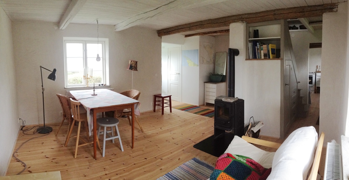 Μείνετε άνετα και γαλήνια σε ένα παλιό ξύλινο σπίτι από τον 19ο αιώνα. Η τοποθεσία είναι αγροτική με ζώα και φύση ακριβώς έξω από την πόρτα, αλλά ταυτόχρονα κοντά στην πόλη, εστιατόρια, διασκέδαση, ψώνια και παραλία/κολύμβηση. Εδώ θα μείνετε ήσυχα και άνετα σε περίπου 120 τ.μ. με 2 υπνοδωμάτια, κουζίνα, μεγάλο σαλόνι με καναπέ, τηλεόραση και τραπεζαρία, καθώς και μπάνε με τουαλέτα, ντους, πλυντήριο και στεγνωτήριο. Δίπλα στο σπίτι υπάρχει μια καταπράσινη, προστατευμένη από τα αδιάκριτα βλέμματα αυλή με ψησταριά ακριβώς δίπλα σε βοσκότοπους με πρόβατα και άλογα. Μπορείτε να σταθμεύσετε το αυτοκίνητο ακριβώς έξω.