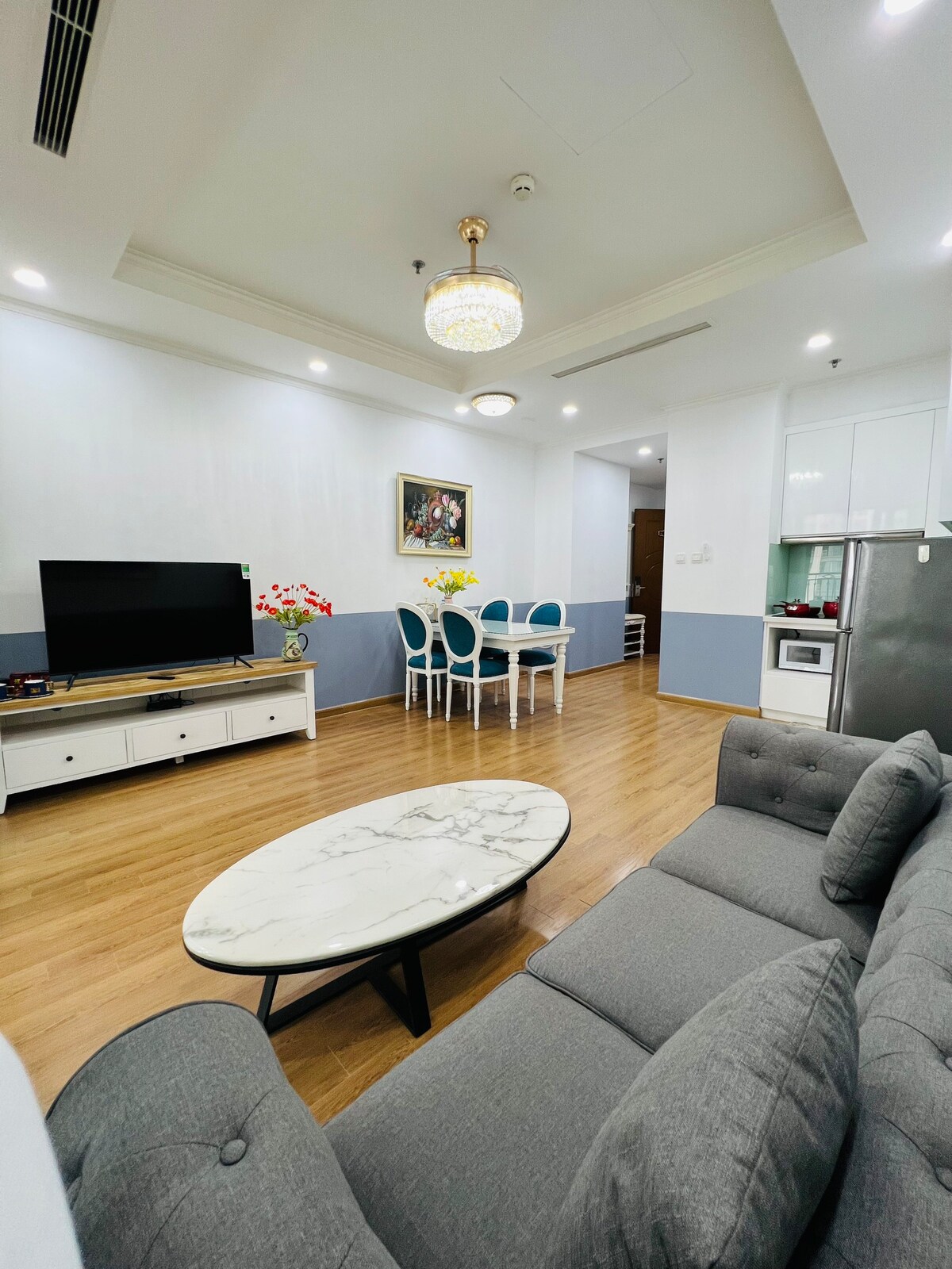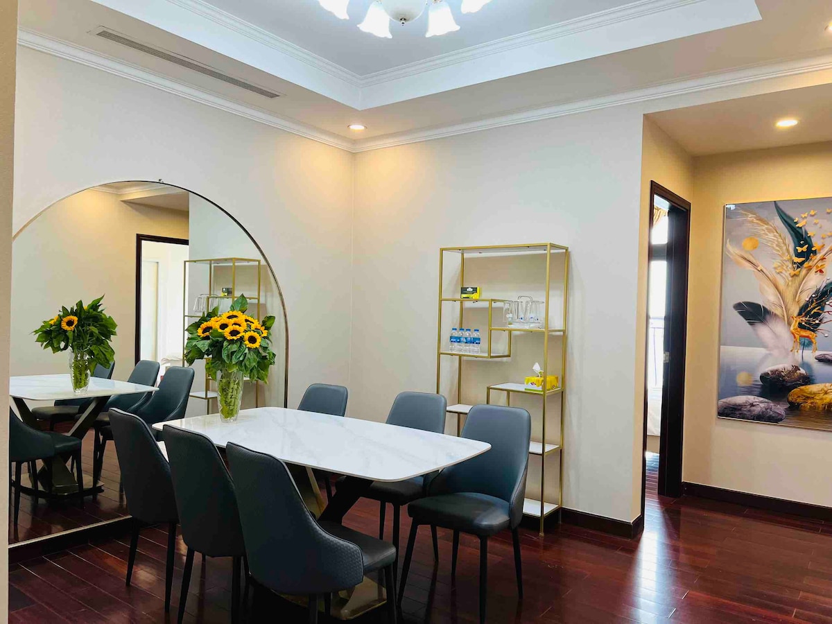 Καλώς ήρθατε στο διαμέρισμα 2 υπνοδωματίων στο Royal City, το οποίο προσφέρει έναν άνετο και ευχάριστο χώρο διαβίωσης με πανέμορφη θέα στην κεντρική πλατεία και πισίνα, μόλις λίγα βήματα από το εμπορικό κέντρο Vincom Mega Mall Royal City. Το διαμέρισμα είναι πλήρως επιπλωμένο με μοντέρνο εξοπλισμό, εκλεπτυσμένο και προσεγμένο ντεκόρ, δημιουργώντας μια άνετη και ζεστή αίσθηση σαν στο σπίτι σας. Πρόκειται για ιδανική επιλογή για σύντομες ή μακροχρόνιες διαμονές, είτε ταξιδεύετε, είτε εργάζεστε, είτε χαλαρώνετε με την οικογένειά σας.