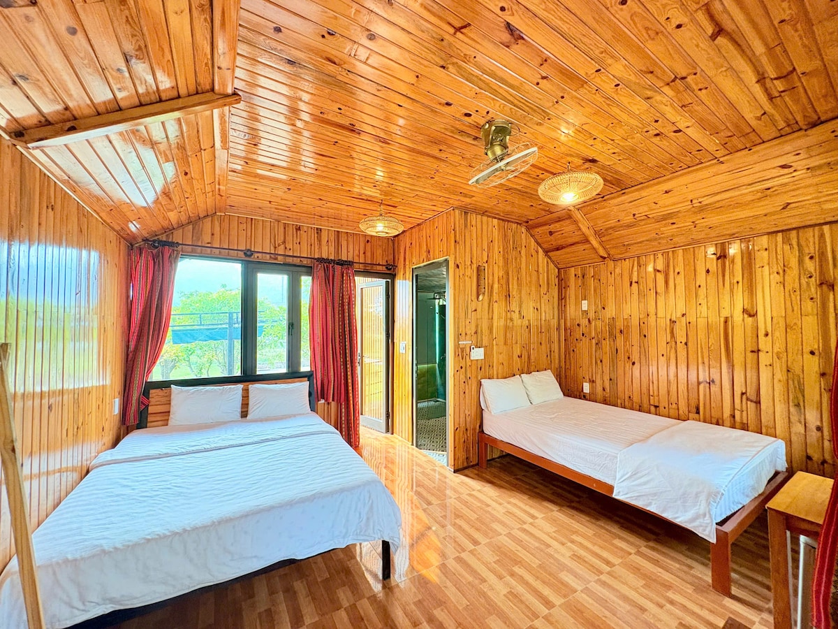 Με το σχέδιο 2 γειτονικών βιλών. Κάθε σχεδιασμός 1 ορόφου με 4 υπνοδωμάτια είναι πλήρως εξοπλισμένος με σύγχρονες υπηρεσίες κοινής ωφέλειας, έπιπλα και σχεδιασμό (κατάλληλο για ομάδες 10-12 ατόμων • Οικογενειακό δωμάτιο με ιδιωτικό μπάνιο: περιλαμβάνει 1 κρεβάτι 1,8 μ. κατάλληλο για 2 ενήλικες και 1 μωρό. • Δωμάτιο με ιδιωτικό μπάνιο: περιλαμβάνει 1 κρεβάτι 1,6 μέτρου κατάλληλο για 2 άτομα • Happy room (εξωτερικός καθαρισμός): περιλαμβάνει 1 κρεβάτι 1,6 μέτρου κατάλληλο για 2 άτομα • Κοιτώνας στον ημιώροφο: περιλαμβάνει 2 μεγάλα στρώματα κατάλληλα για 4-5 άτομα