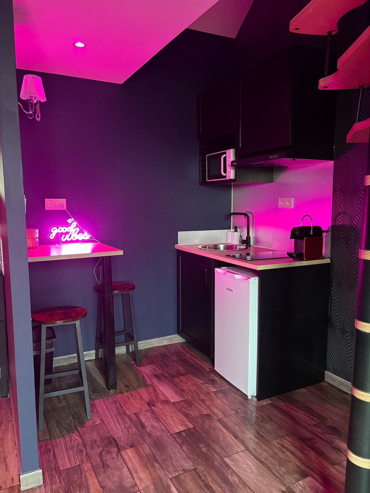 Bien plus qu’un logement, ce lieu a été imaginé comme un véritable cocon romantique. ✨ Lumières tamisées, ambiance chaleureuse, attentions délicates à votre arrivée… Tout est pensé pour créer une atmosphère douce et intime. Après une journée d’évasion, profitez de votre jacuzzi privatif autant de fois que vous le souhaitez pour un moment de détente absolue, en toute tranquillité.🌷