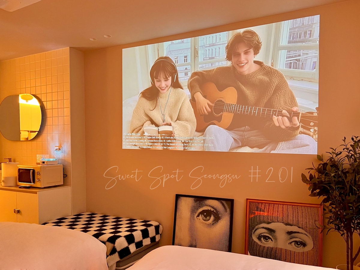 [sweet spot, Σεονγκσου]#201.Σταθμός Σεονγκσου. Νήσος Τουκ. Σεονγκσου-ντονγκ. Γιονμουγιάνγκ-γκιλ. Ιδιωτικό δωμάτιο. 2 κρεβάτια. Netflix