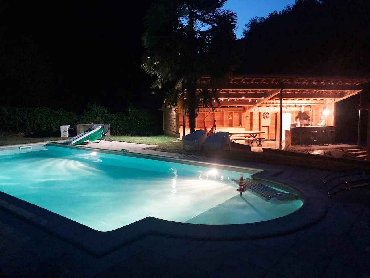 Welcome to L'Ours et Son Petit Oiseau (The Bear and his Little Bird), set in 8 acres with views over a wild valley run with deer and sanglier. Cool off in the saltwater pool, relax in a hammock, unwind in the wood-fired hot tub, or get to know the many animals who also call this place home. Cicadas and birds sing to the setting sun, and there's not a human soul for miles. Fields and vineyards lead to the winding streets of medieval Issigeac, a boulangerie, a café and the perfect afternoon.
