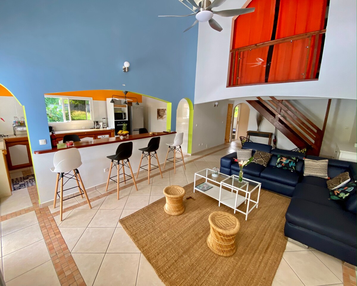 Θαυμάσια βίλα (180m²) με μεγάλο κήπο και ιδιωτική παραλία, κοντά σε όλες τις ανέσεις, ιδανικά τοποθετημένη στη Σαιντ-Αν (Γκραντ-Τερ), συγκλίνων άξονας ναυτικών και τουριστικών δραστηριοτήτων (αγορά, χωριό με χειροτεχνίες, λιμάνι, Kytesurf). Ιδανική για διαμονή με την οικογένεια ή με φίλους, 8-10 άτομα. 10 λεπτά με τα πόδια από το χωριό Sainte-Anne και επομένως από τις πιο όμορφες παραλίες της Γουαδελούπης με καθαρή και ήρεμη θάλασσα, ιδανική για μικρά και μεγάλα παιδιά.