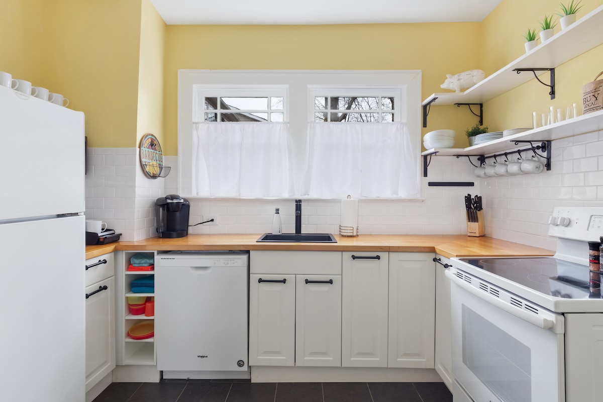 Το σπίτι μας βρίσκεται σε ένα ηλιόλουστο γωνιακό οικόπεδο και είναι το ιδανικό μέρος για να νιώσετε σαν στο σπίτι σας! Απολαύστε την ανατολή του ηλίου με το αγαπημένο σας ρόφημα στη γλυκιά μπροστινή βεράντα και έξω πίσω, θα λατρέψετε το τζάκι + τη βεράντα με ψησταριά υγραερίου. Στο εσωτερικό, θα βρείτε φυσικό φως σε όλο το κατάλυμα, μια καλά εξοπλισμένη κουζίνα με αναβαθμισμένες, σύγχρονες συσκευές, αξιόπιστο wifi + μια έξυπνη τηλεόραση έτοιμη για τις δικές σας συνδέσεις streaming. Κοντά σε όλα! Ανυπομονούμε να σας φιλοξενήσουμε! Πρόωρη άφιξη + καθυστερημένη αναχώρηση διαθέσιμη με επιπλέον χρέωση
